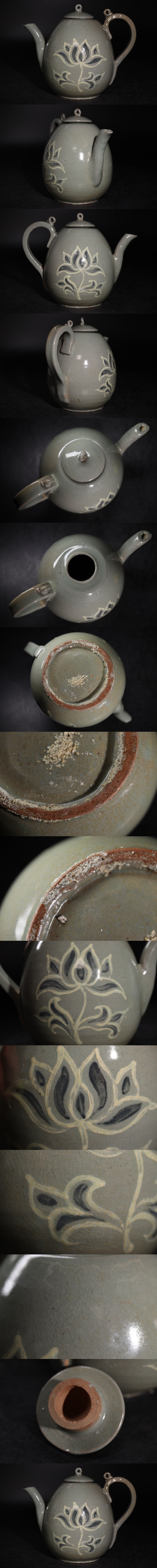 | 時代 高麗青磁 草花紋 白黒象嵌 水注 / 朝鮮古美術 李朝 高麗 青磁 急須 茶器 煎茶道具 .G3543 |
