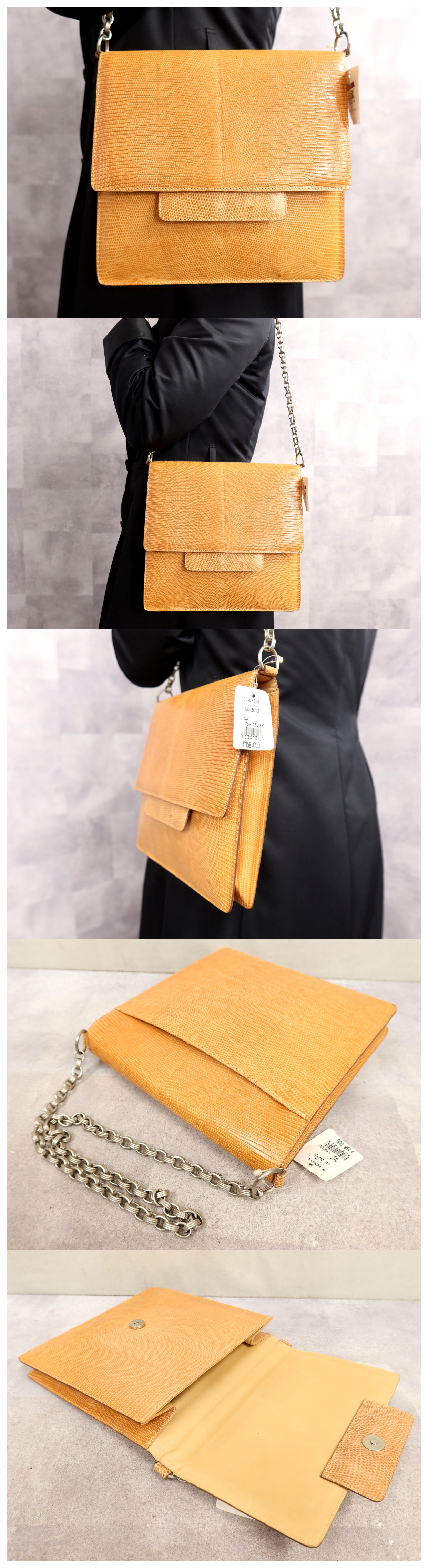 ●超美品●BOTTEGA VENETA ボッテガ ヴェネタ●リザード 本 トカゲ 革●チェーン ショルダー バッグ●キャメル●ヴィンテージ●Js64697