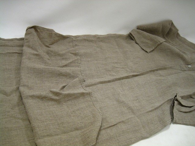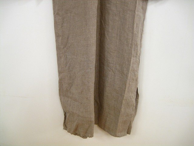 | リネン100% ※ 状態は、弊社基準により表記をさせて頂いております。 ※ リユース商品の為、表示しきれないダメージなどある場合もございます。 ※ 実店舗業務の運営上、質問にお時間をいただく場合や主観的なご質問にはお答えできかねる場合がございます。 サイズ | | 【肩幅】 : 39cm 【身幅】 : 49cm 【着丈】 : 117cm 【袖丈】 : 51cm すべて平置きでの採寸となっております。 素人採寸ですので、ご参考程度にお願いします。 付属品 | ※ 出品商品はお写真に写るものが全てとなります。 | ※ ハンガー・スタンド等、備品を用いて撮影している場合がございますが、備品は付属いたしません。 店舗名 | 四日市店 | 発送について | ゆうパック、もしくは 佐川急便、ヤマト運輸(選択は出来ません) 元払のみの発送です。管理上その他の発送方法には、対応できません。お問い合わせは、ご遠慮願います。 | お支払いについて | 落札金額 + 消費税 + 送料 のお支払いとなります。 | 送料は送料欄にて、お届け先の都道府県をご選択頂き確認をお願い致します。 ※ 離島など別途追加が必要な場合もございます。 ※【お支払方法】銀行振込・代引きには対応しておりません。 同梱について | ※ 発送の拠点が複数ございます。同梱できない場合は個別配送となりますので、ご容赦下さい。 | ご落札の流れ | ヤフオク!ストアが出品した商品を落札した場合、個人が出品した場合とは取引方法が異なります。また、ストアとの取引では商品受け取り後の受け取り連絡は必要ありません。 | >> ヤフオク! リンクはコチラ ご注意事項 | お写真は撮影時の状態です。 | 店頭にて併売しているお品はコンディションが変わる場合もございます。 購入時に著しくコンディションが変わってしまっている場合はご連絡いただければ真摯に対応致します。 お色・状態に関しては、モニター環境や、太陽光・室内ライトなどの環境により、見え方が違う事もございますので、ご理解頂ければ幸いです。 中古品ですのでノークレームノーリターンでお願い致します。 材質タグがある場合は、写真撮影しておりますので そちらでご確認願います。 他店舗でも同時に販売しておりますので、売り切れの際は ご容赦頂ければ幸いです。 |