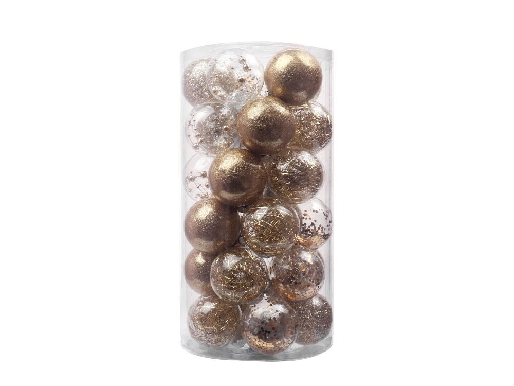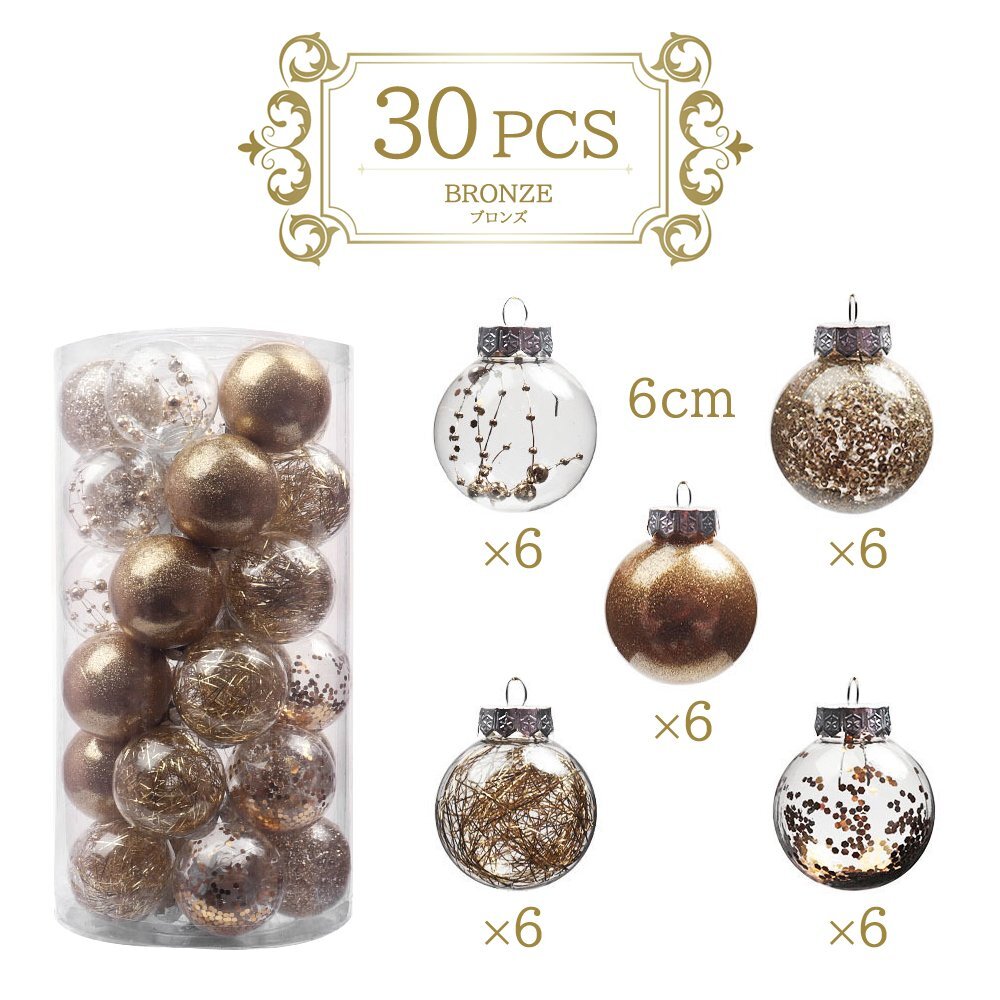 クリスマスツリーオーナメント ボール型 30個セット ブロンズ クリア 透明 ラメ シンプル 装飾 Xmas Christmas デコレーション インテリア