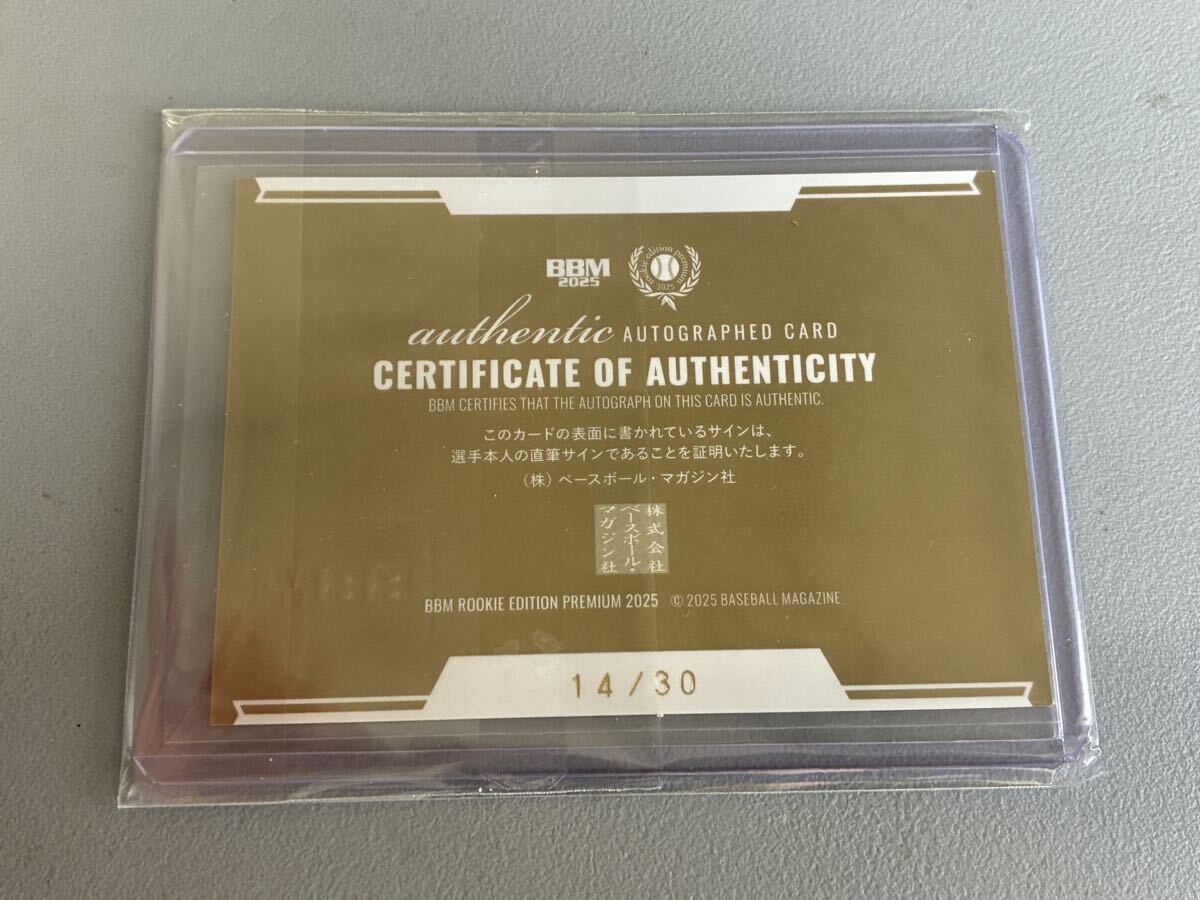 中村優斗 2025 BBM ルーキーエディションプレミアム 直筆サインカード /30 横型 REP 東京ヤクルトスワローズ ドラフト1位