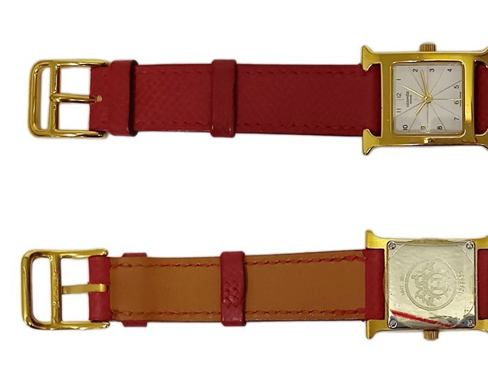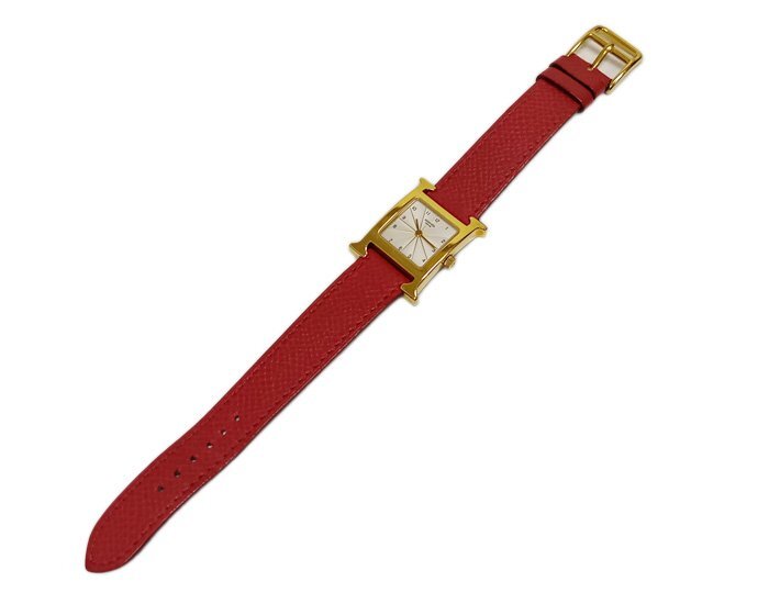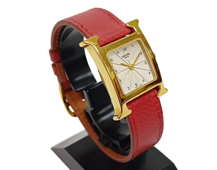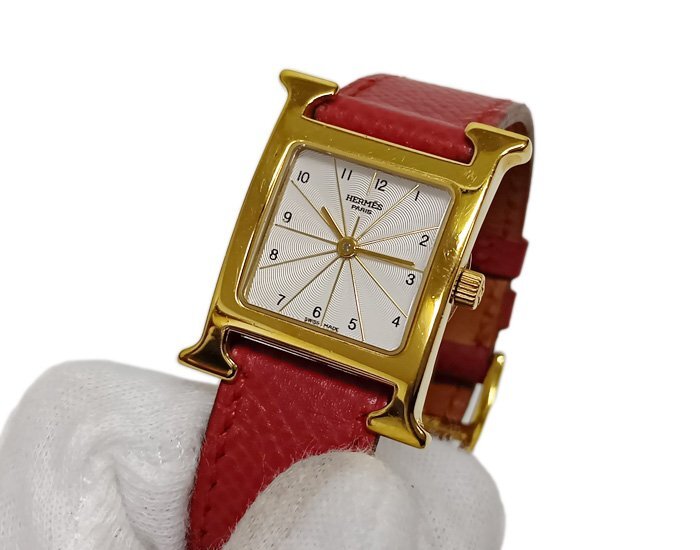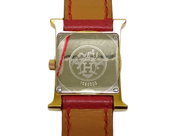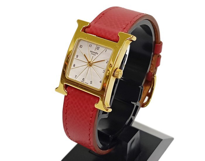 商品詳細 【 商品名 】HERMES エルメス Hウォッチ レディース 腕時計 HH1.201 シルバー 文字盤 クォーツ □A刻印 赤 レザー ベルト 稼働品