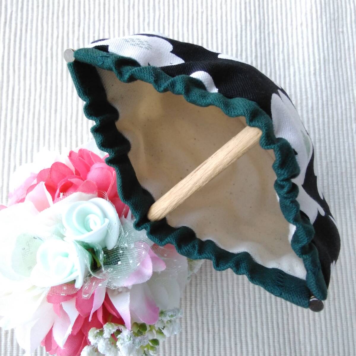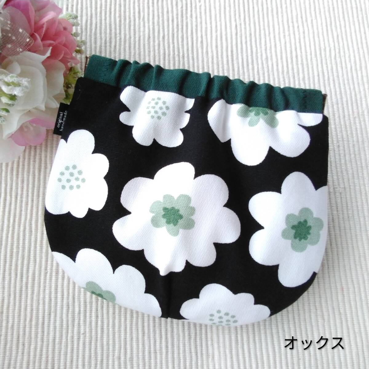 ハンドメイド バネポーチ フローラル ブラック