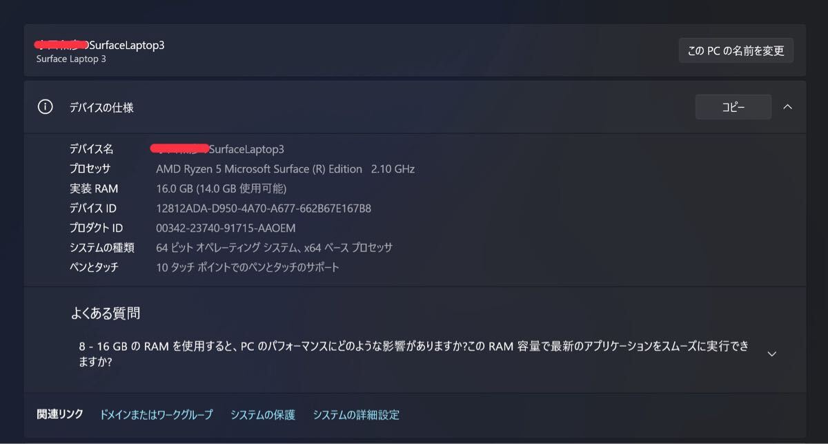 CPU:AMD Ryzen 5 Microsoft Surface Edition(2.10GHz)