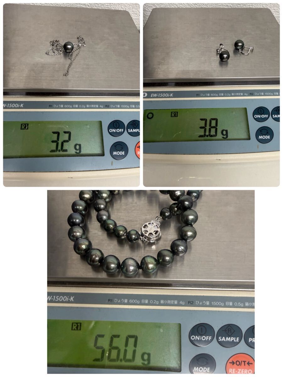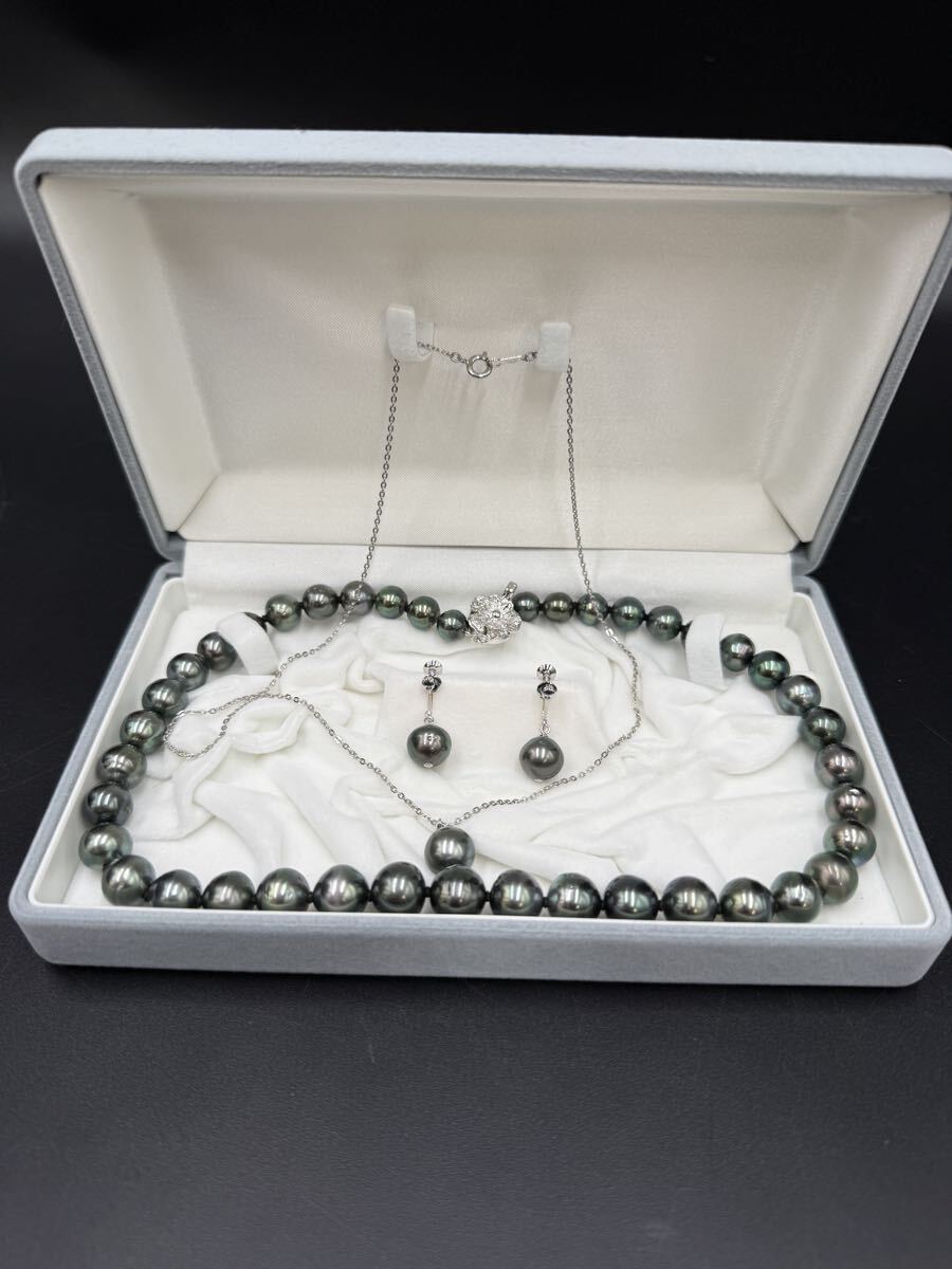 黒蝶真珠 パール ネックレス パールネックレス イヤリング シルバー 3点セット ケース付き