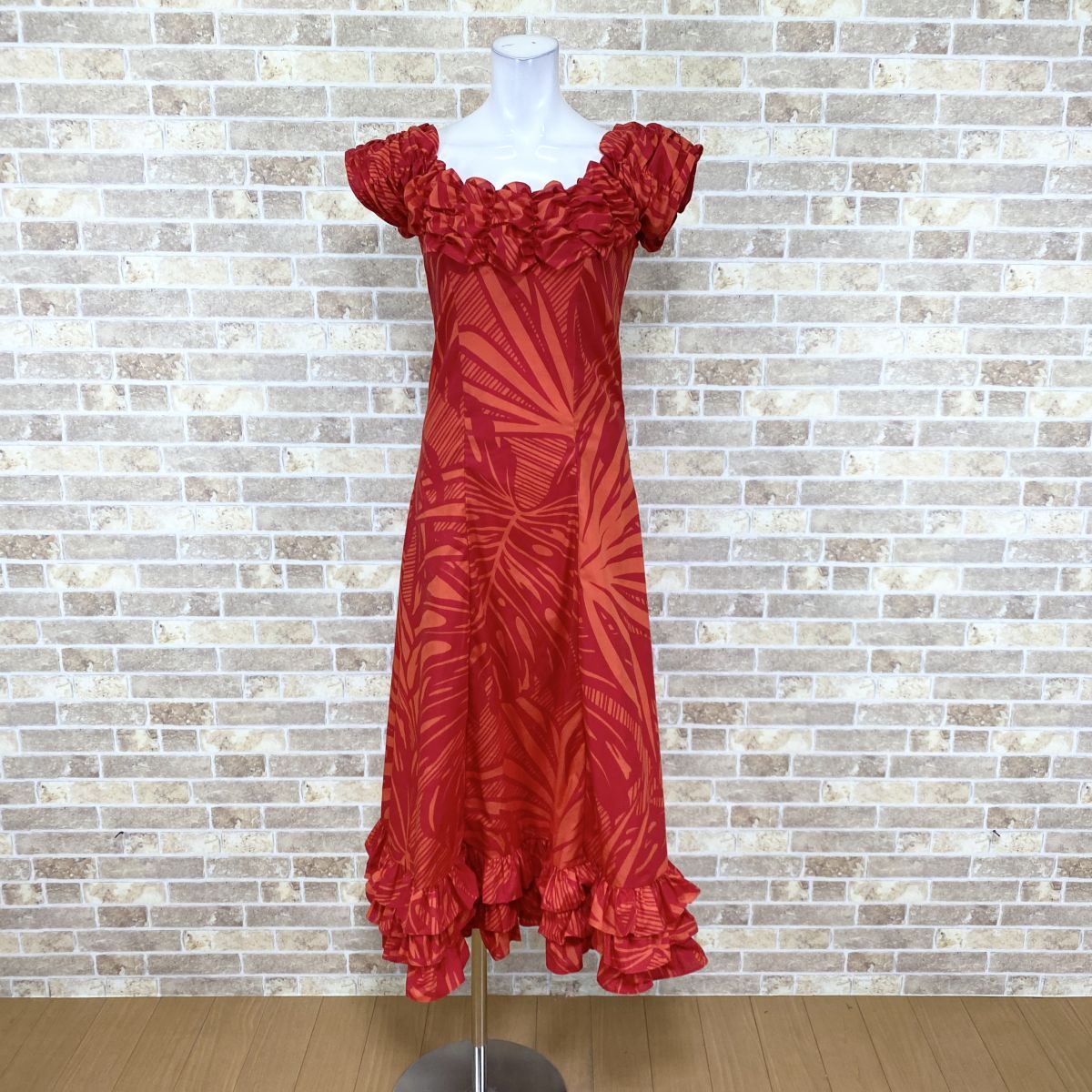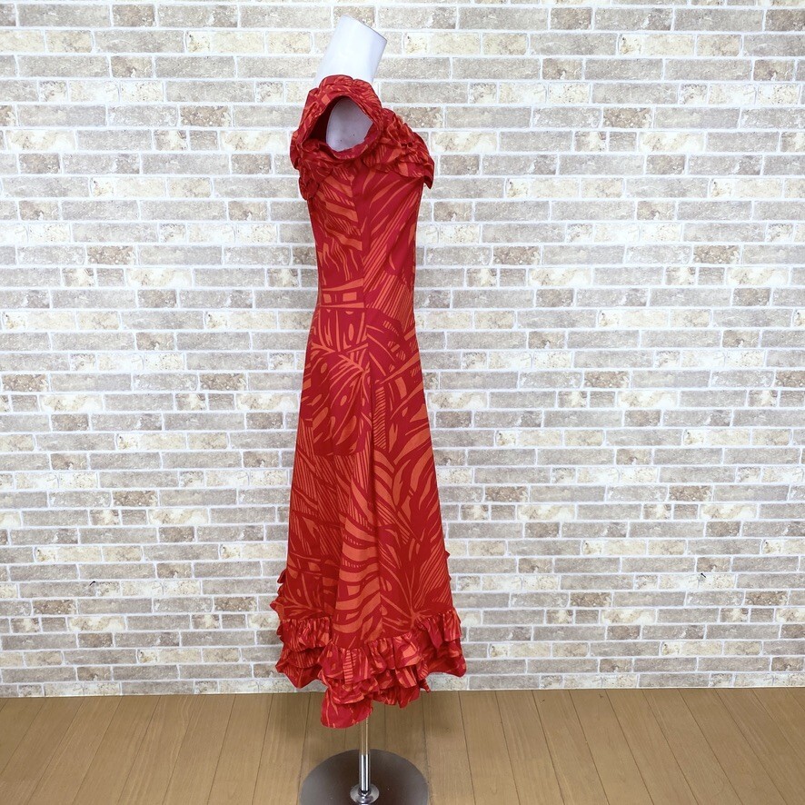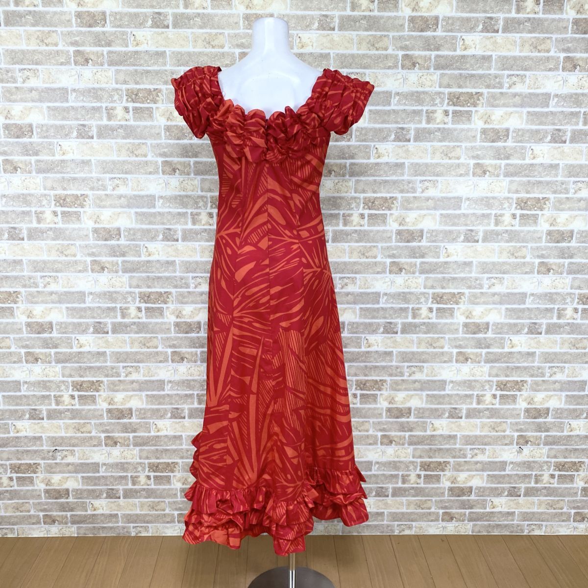 1円 ダンスドレス 赤系柄 3-4 HAWAII製 ダンス衣装ドレス カラードレス  発表会 舞台衣装 イベント 中古17165