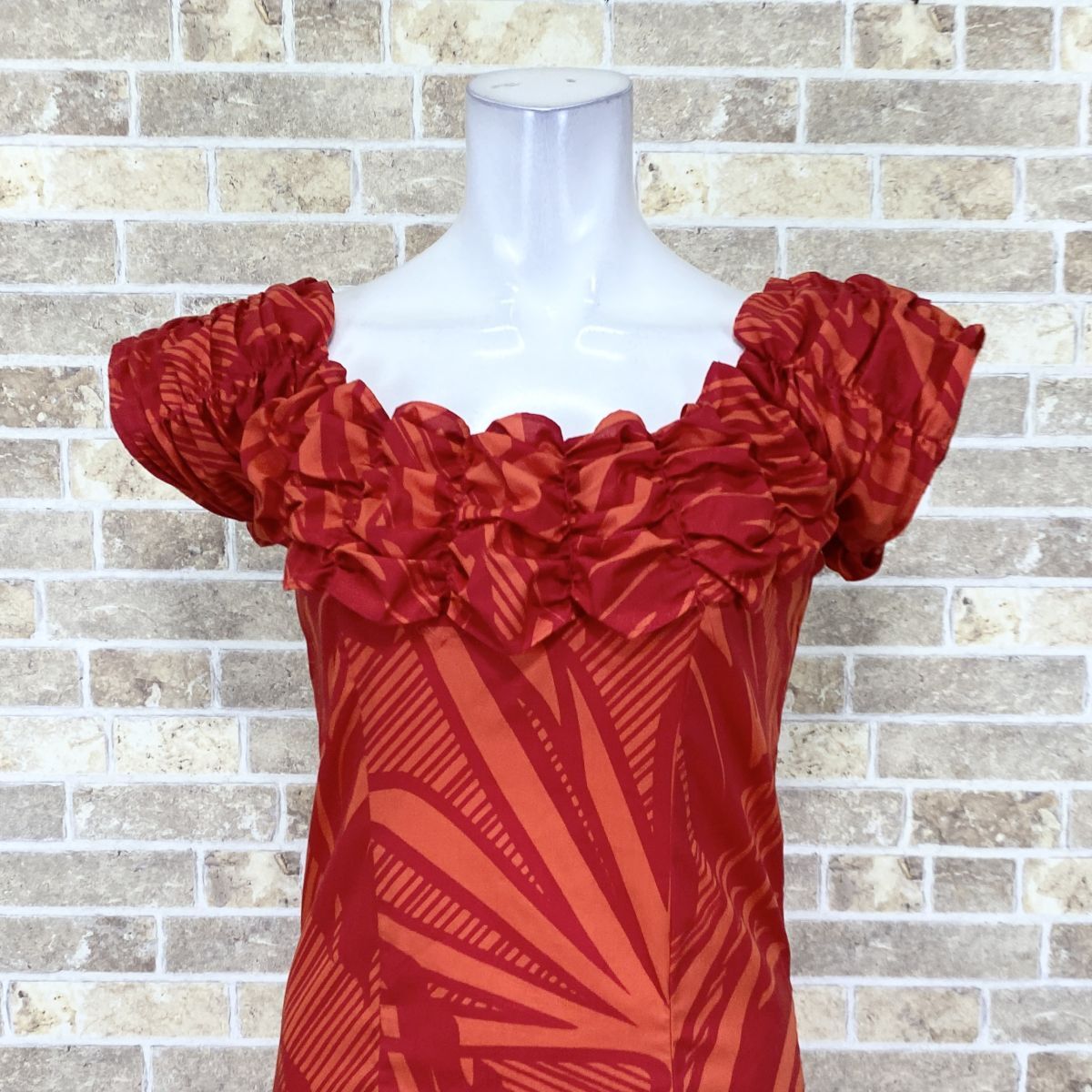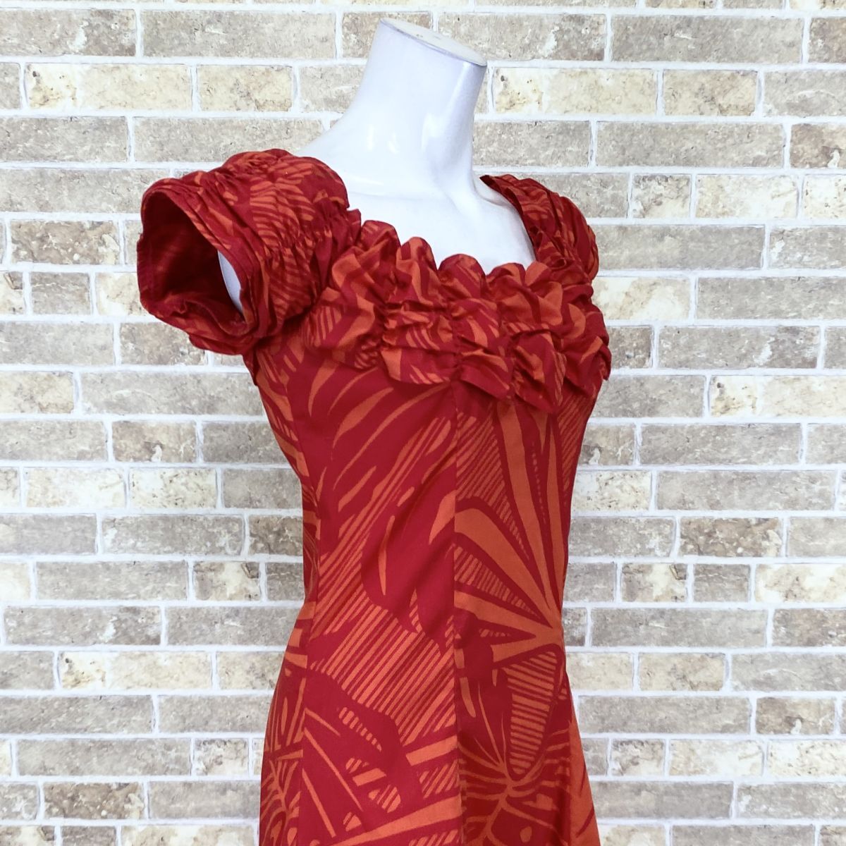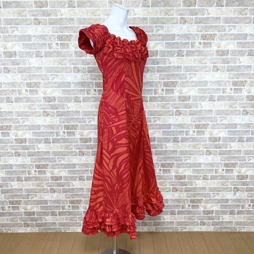 1円 ダンスドレス 赤系柄 3-4 HAWAII製 ダンス衣装ドレス カラードレス  発表会 舞台衣装 イベント 中古17165
