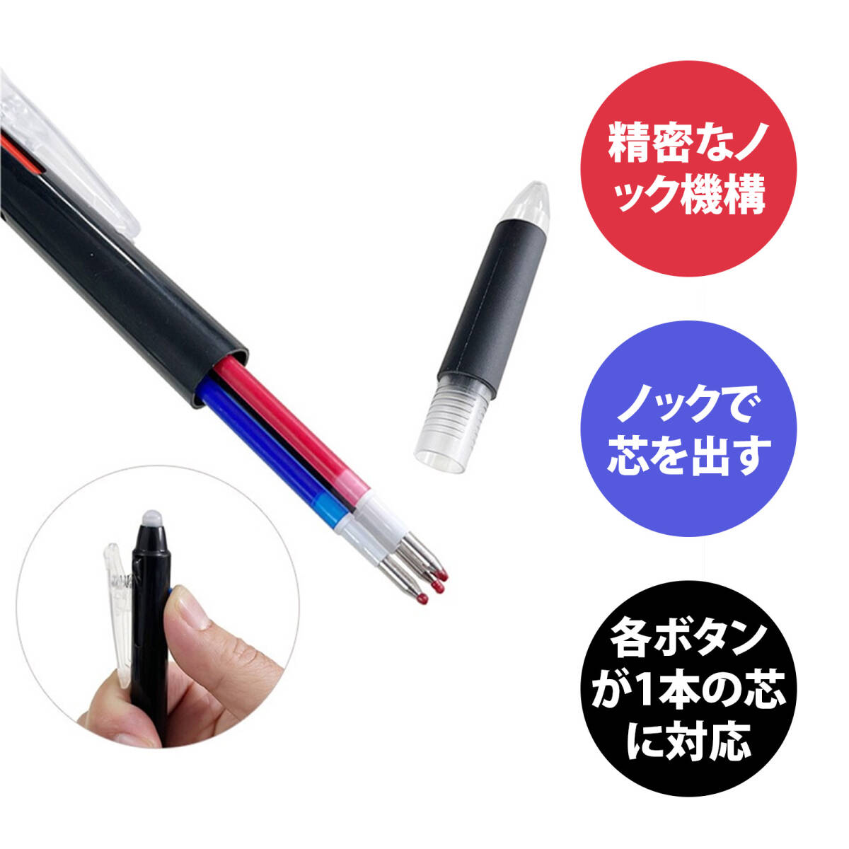 | この商品について | 【消せるインクでミスを恐れない】:書き間違えても安心。ペン後部の専用ラバーで簡単に消せる可消しタイプ。摩擦熱でインクが透明になる仕組みで、きれいに修正できます 【温度変化で消える・戻る!ユニークな温感インク】:約25℃で最も鮮やかに発色。50℃以上になると文字がゆっくり消え、60℃では完全に透明に。冷凍庫(−10℃)で2時間ほど冷やせば、再び文字が戻る驚きの再生機能付き。 【3色一体型で効率アップ】:黒・赤・青の3色を1本に搭載。ボタンひとつでスムーズに切り替えられる精密な押し出し構造で、勉強やビジネスの場でもストレスなく使用可能。 【交換可能なリフィルで経済的、お手頃価格】:純正リフィルを使い切ったら、同じリフィルをご購入いただけます。ペンを廃棄する必要がなく、再利用できるので経済的です。 【速乾性インクでなめらかな書き心地】:にじみやすい紙でもインクが素早く乾きます。メモ、議事録、手帳、筆記などに最適です。 |