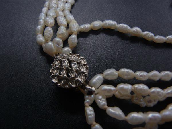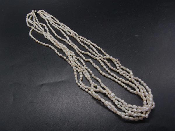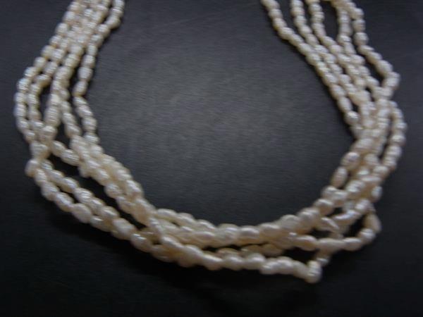 ■美品■ 本真珠 ライスパール パール 約4mm 5連 ネックレス チョーカー アクセサリー レディース オーロラ系 DJ4164
