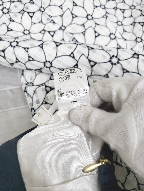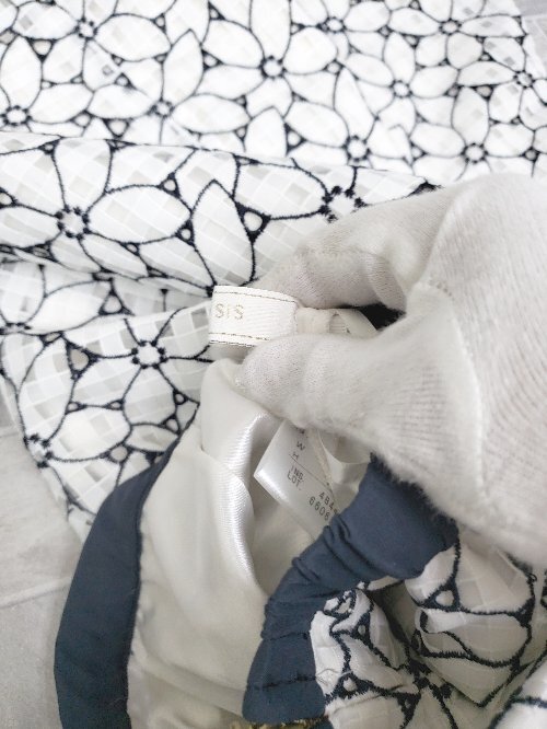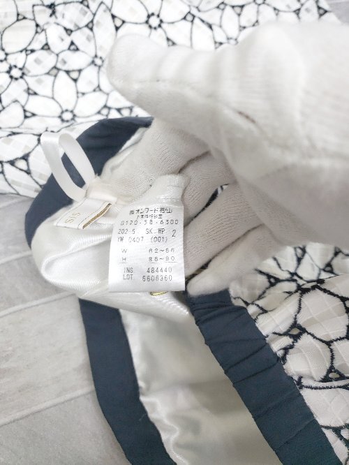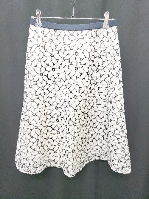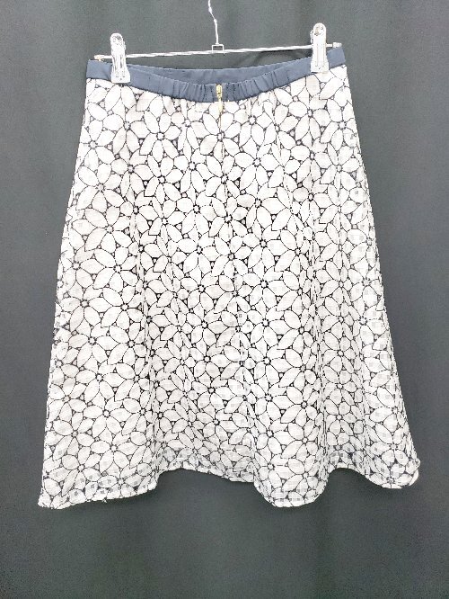 ◇ ⊂ Φ any SiS エニィスィス 花柄 刺? 膝丈 フレア スカート サイズ2 ホワイト ネイビー系 レディース P