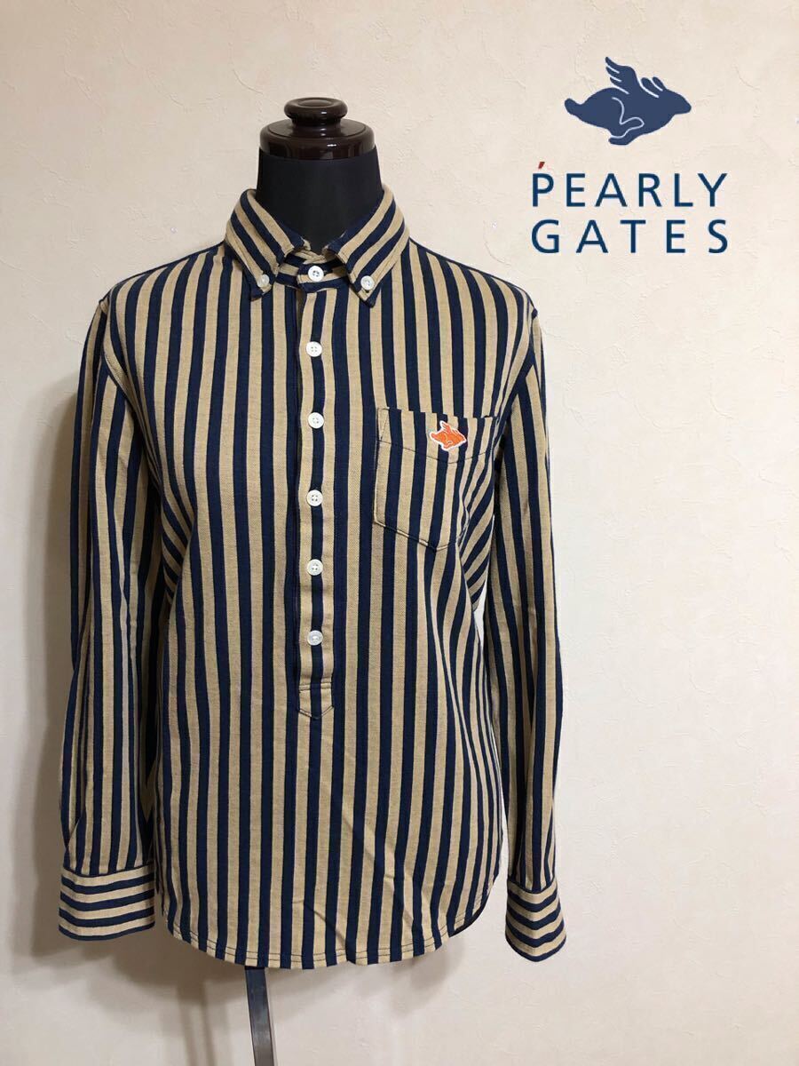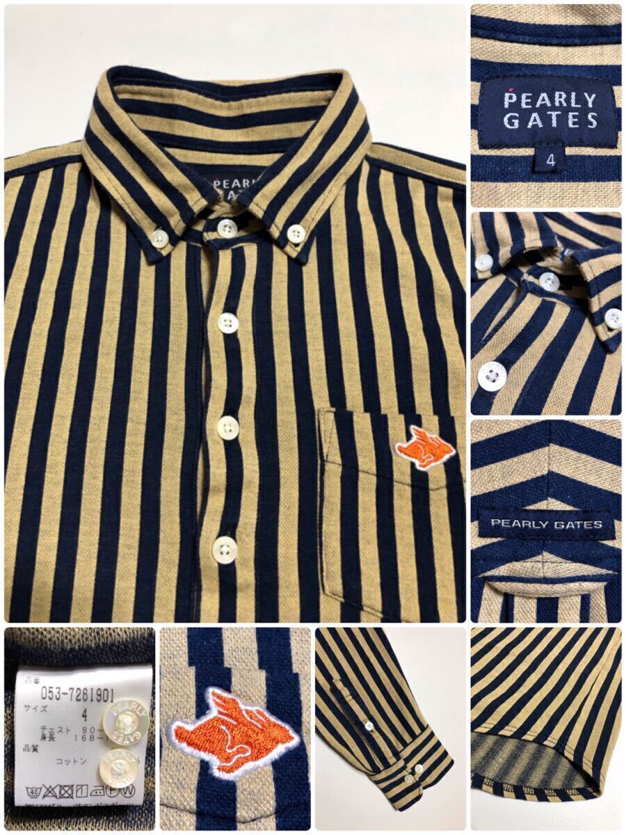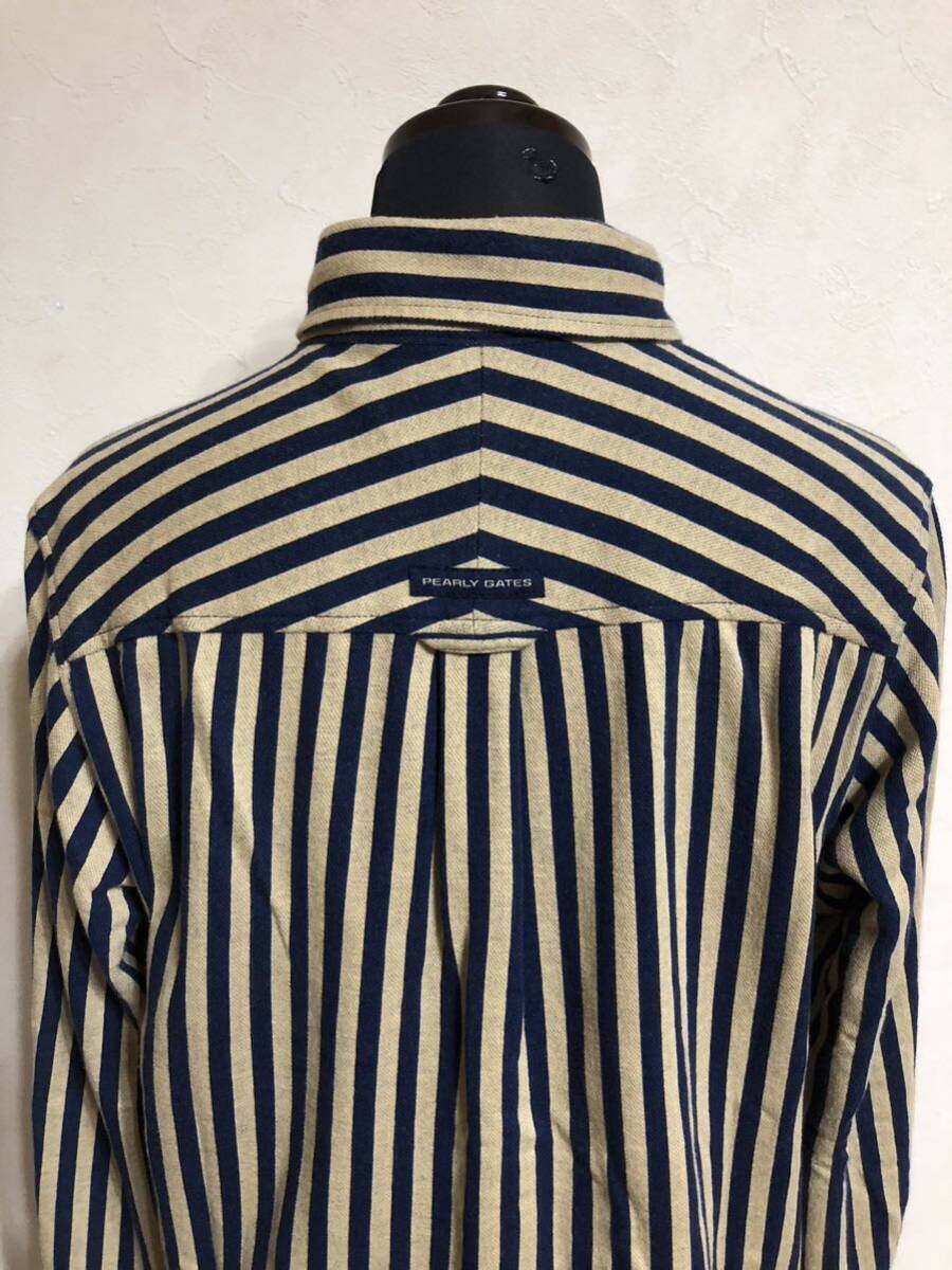 PEARLY GATES GOLF パーリーゲイツ レディース ゴルフ ウェア ボタンダウン ストライプ シャツ トップス サイズ4 長袖 カーキ ネイビー