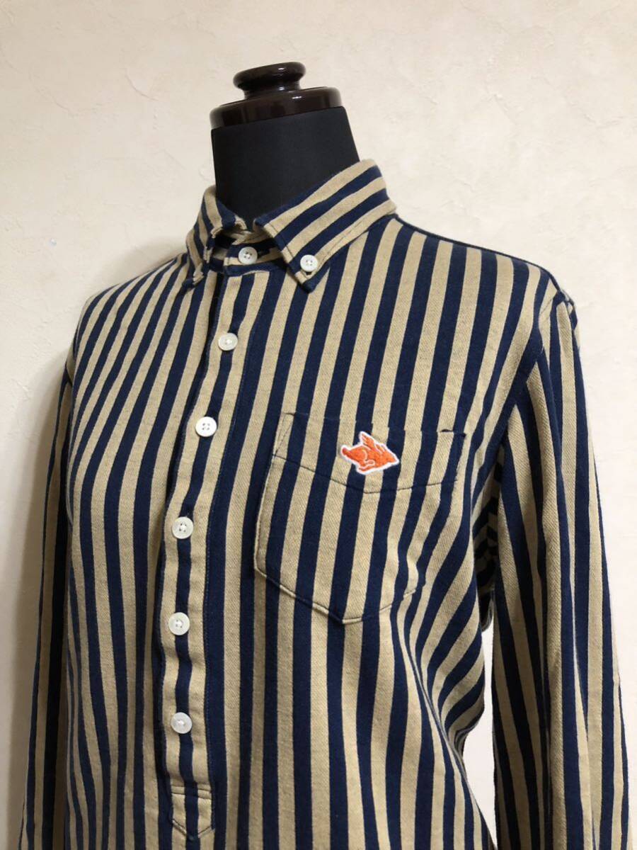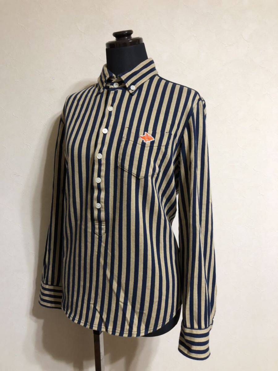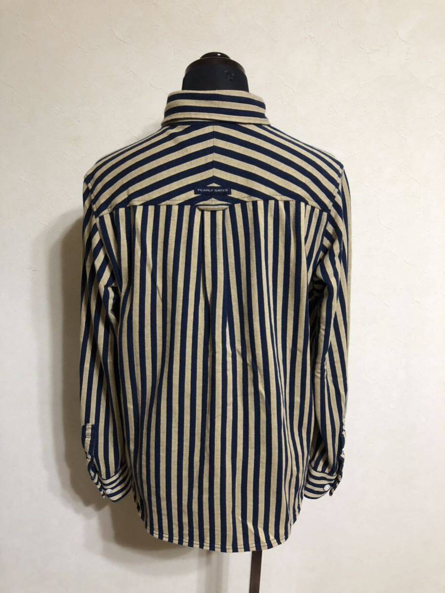 PEARLY GATES GOLF パーリーゲイツ レディース ゴルフ ウェア ボタンダウン ストライプ シャツ トップス サイズ4 長袖 カーキ ネイビー