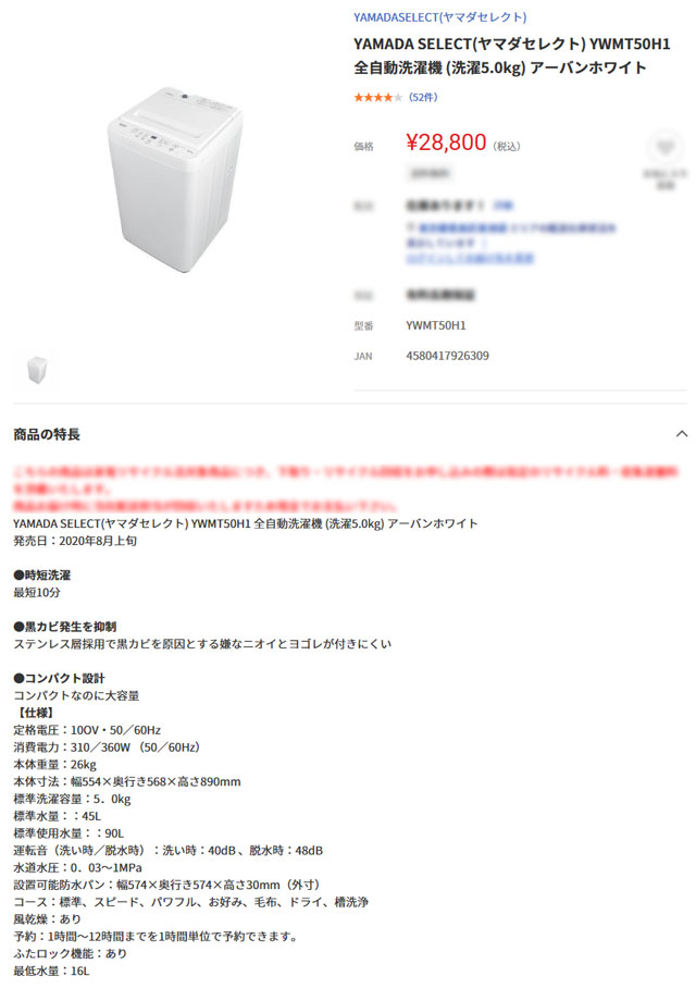 | メーカー・型式 | ヤマダセレクト / YWM-T50H1 | |