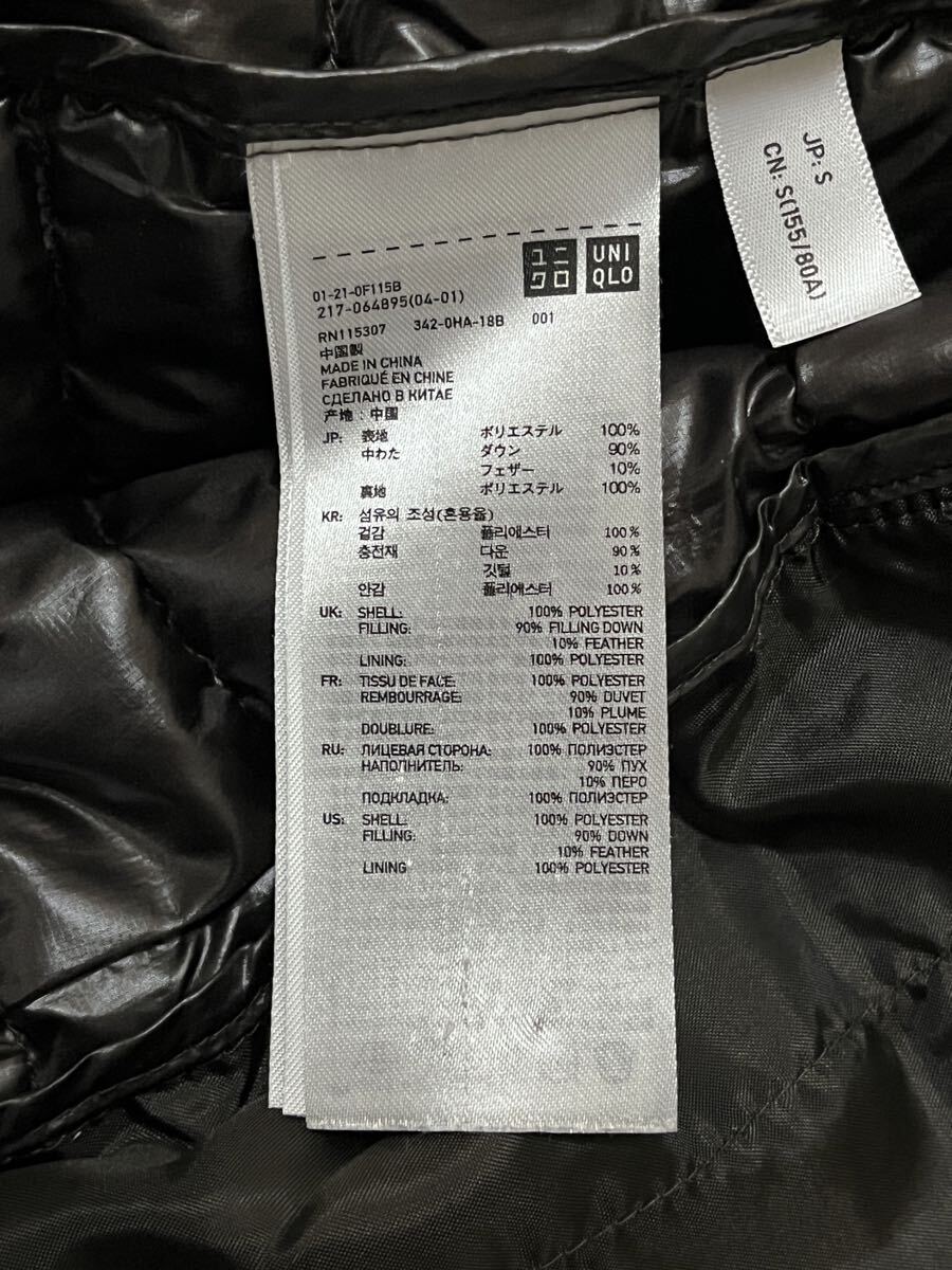 表地ポリエステル100% 中わたダウン90% フェザー10%混紡素材の柔らかく軽量のダウン素材を使用した1枚です。