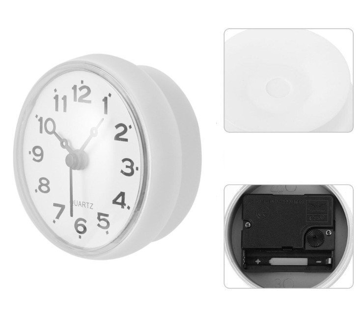 【vaps_3】シンプル 防水 お風呂時計 《ホワイト》 吸盤式 ミニ アナログ クロック バスルーム 浴室 冷蔵庫 キッチン 送込