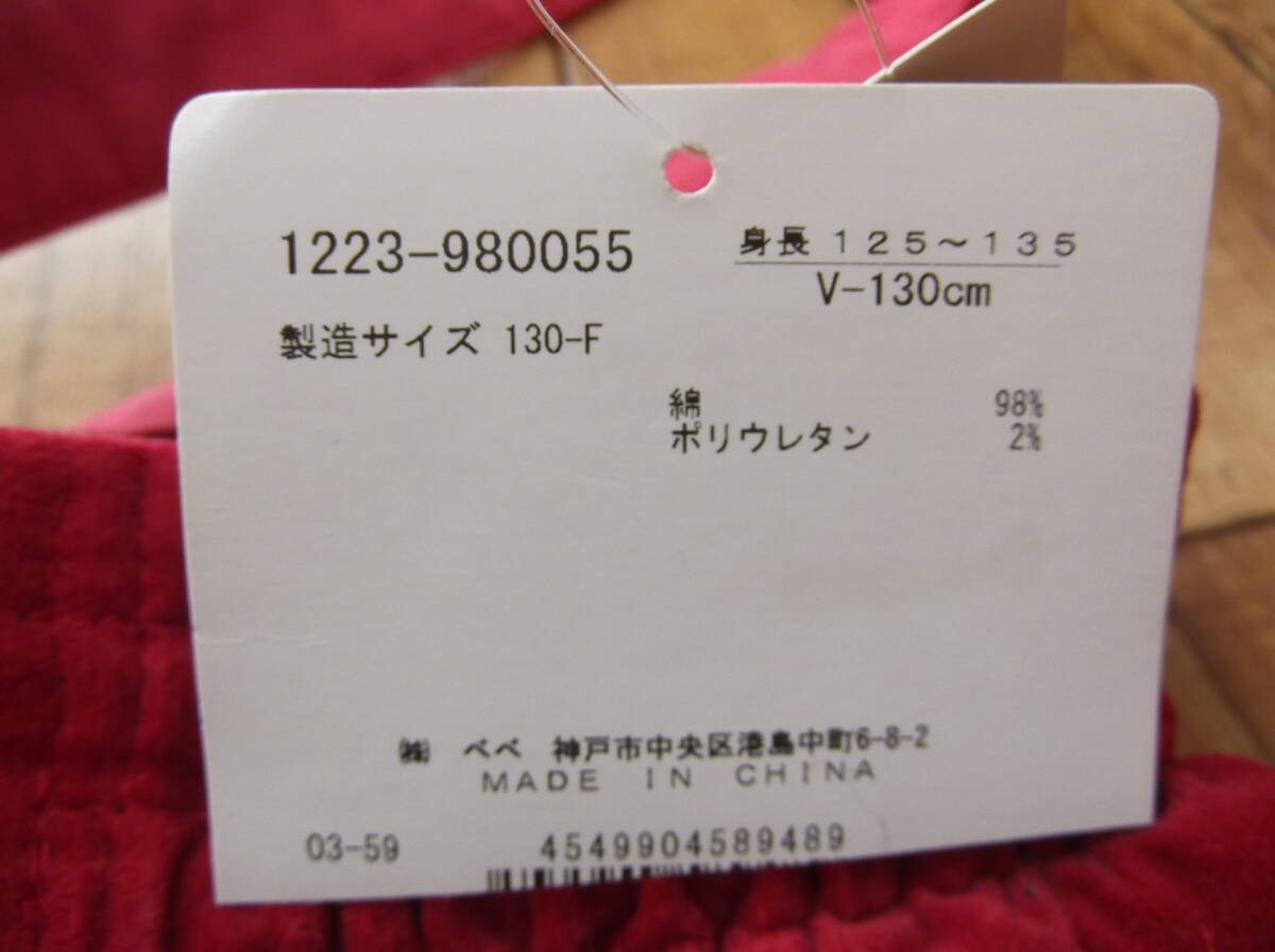 ★新品未使用★ZIDDYジディ(BEBE/コーデュロイサス付スカート/130サイズ/レッド