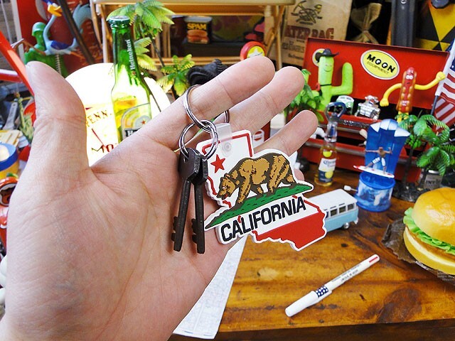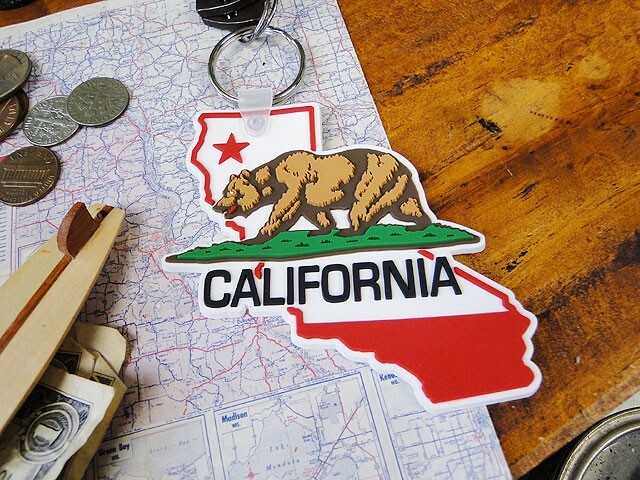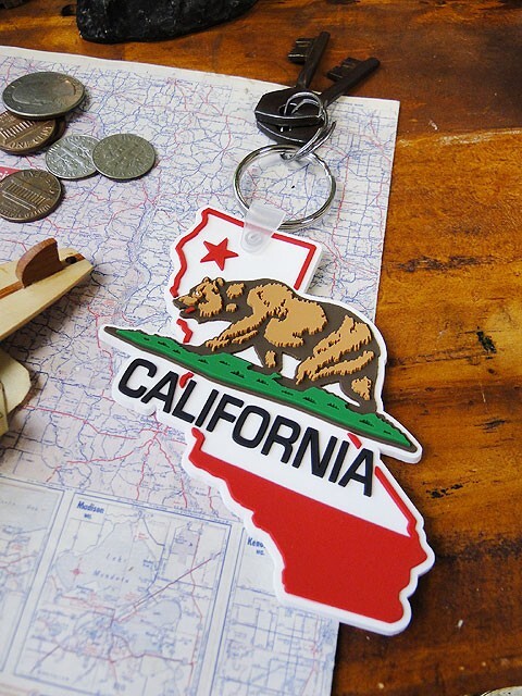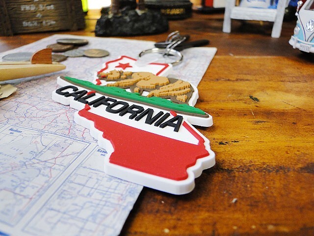 今人気のサーフスタイルで象徴的ロゴとして人気の高いカリフォルニア州旗のデザインがラバーキーホルダーにしたのがこちら!