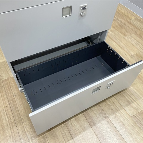 ■取り扱い番号 CL-878376B ■仕様 メーカー : オカムラ 製品名 : Rectline 色素材 : ライトスモーク 外寸 : 幅900mm 奥行き450mm 高さ1115mm ランク : Bランク ■特徴 ※非常解錠キーは付属してません。 ※非常解錠キー作成は1本3000円(税別)、約1~2週間程かかります。別途見積になりますのでご了承ください。 ベース付 A4サイズの書類やファイルはもちろん、形や大きさが一定ではないものの収納にも便利です。取っ手は上下左右4方向から操作できるので、使う人のさまざまな状況に対応し、ダイヤル式なので鍵を持ち歩く煩わしさ、鍵の紛失の悩みを解消します。 |