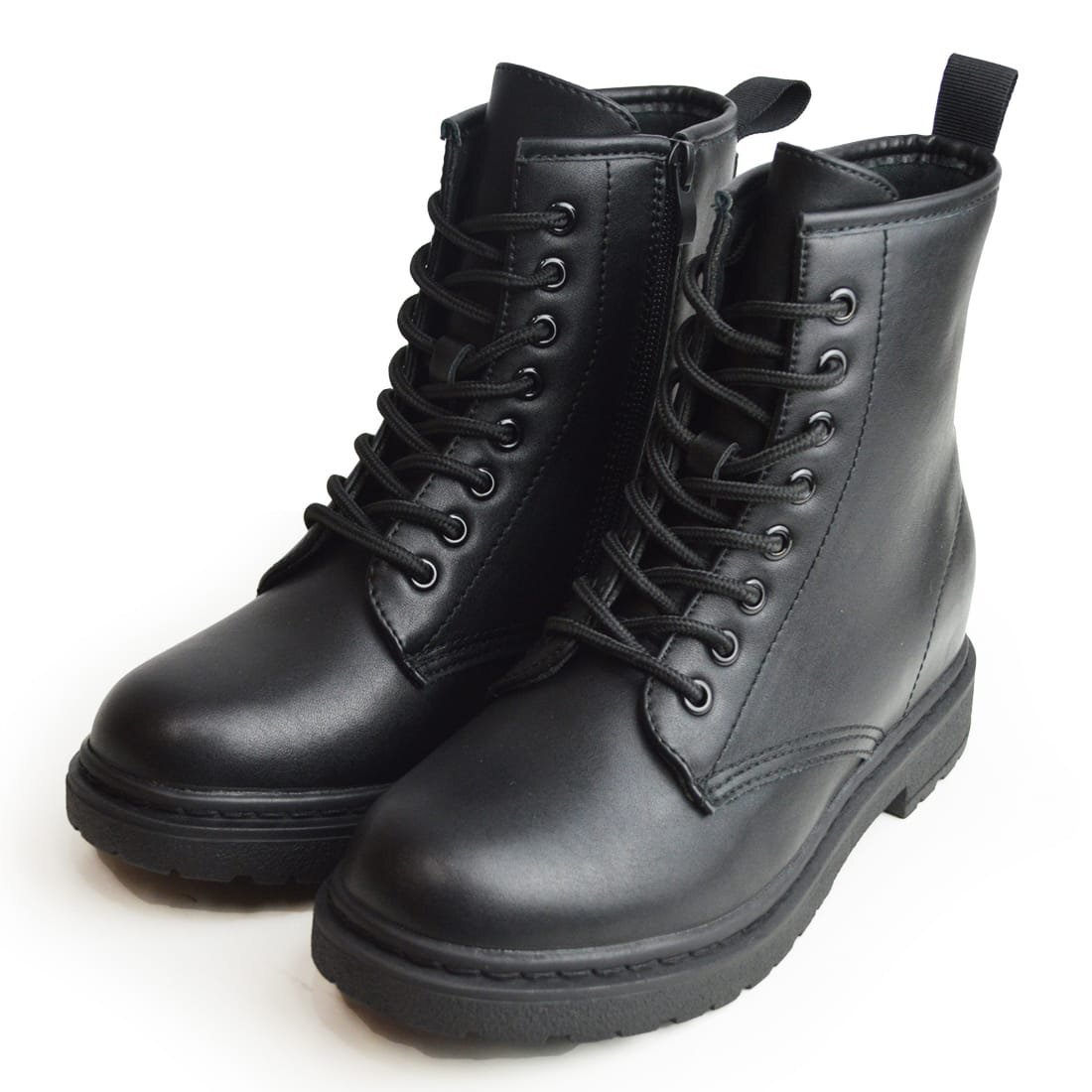新品■23.5cm レディース 編み上げ ブーツ 6cm インヒール レースアップ ショートブーツ サイドジップ ミドル丈 脚長 防滑 低反発 靴