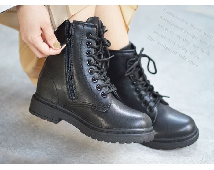 レディース 編み上げ ブーツ 6cm インヒール レースアップ ショートブーツ サイドジップ ミドル丈 脚長 防滑 低反発 靴 16112