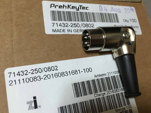旧Ortofon SPU専用アームには当初より Germany PrehKeyTec社製 L型コネクター角度60度のDINプラグが使用されています。