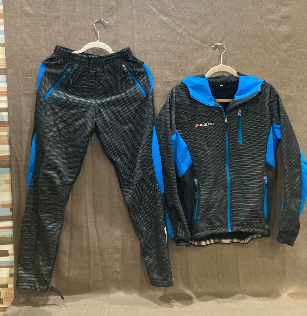 62 JUNGLEST サイクルジャケット 上下 Mサイズ M ブラックxブルー セットアップ あ