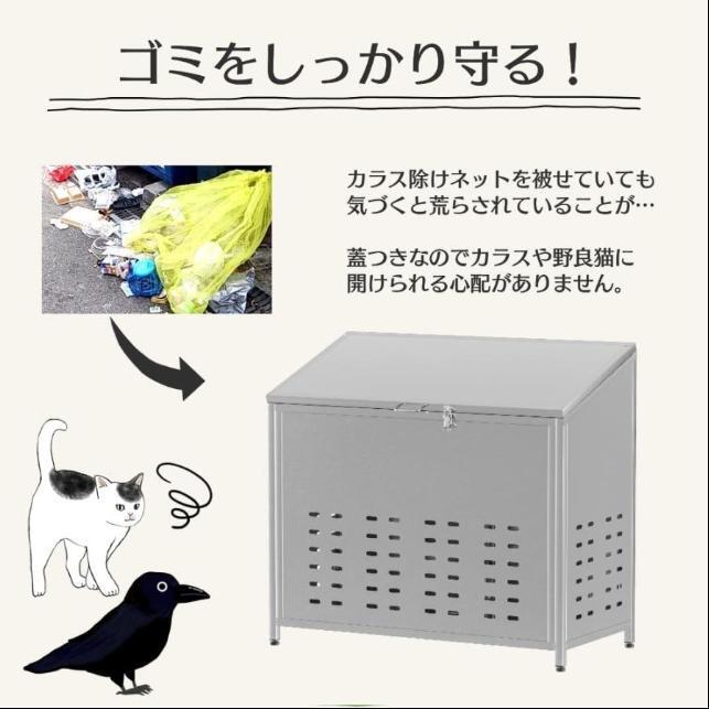 ・蓋付なのでカラスや野良猫などからゴミを保護します。雨や日光からも防ぐことができます。蓋固定ピンが内部にあり南京錠をつけられ(穴直径4mm)、不法投棄やいたずらによる被害も防ぎます。
