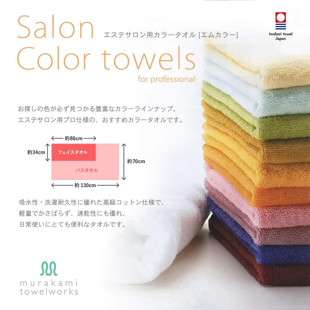 【エムカラー 全100色】エステサロン用に豊富なカラーバリエーションで作られた、やや薄手のフェイスタオルです。綿100%のやわらかな生地で吸水性がよく、日常の生活で扱いやすいタオルです。部屋干しにも適した速乾性の高いタオルですので、スポーツ・レジャーシーンをはじめ、アウトドアや旅行のお供にも最適です。また軽量薄手のタオルですので、お風呂上りに頭に巻いたり様々な使い方ができます。