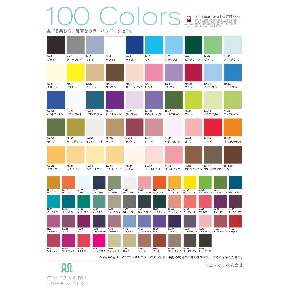 このフェイスタオルは、今治タオル(imabari towel)に認定されたフェイスタオルです。今治タオルのブランドマーク&ロゴは「今治タオル工業組合」が付与します。独自の認定基準に合格した、最高品質のフェイスタオルであることをするものです。認定番号 第2013-734号 企業番号0055 村上タオル(株)