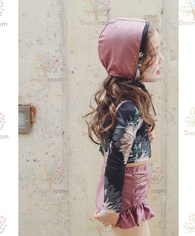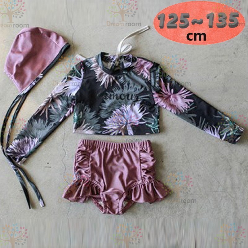 1スタ☆ラッシュガード セパレート水着 上下セットアップ パープル【3XL】125-135cm 子供服 女の子 レギンス 長袖 ズボン 日よけ ビキニ 海 プール swi-109