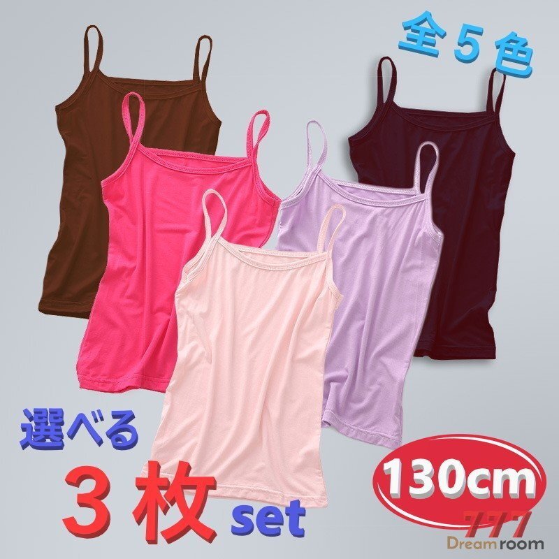 1スタ☆kids 全5色 選べる 3枚☆【130cm】girls キャミソール K-279 ノースリーブ キャミ 子供 インナー 下着 シャツ