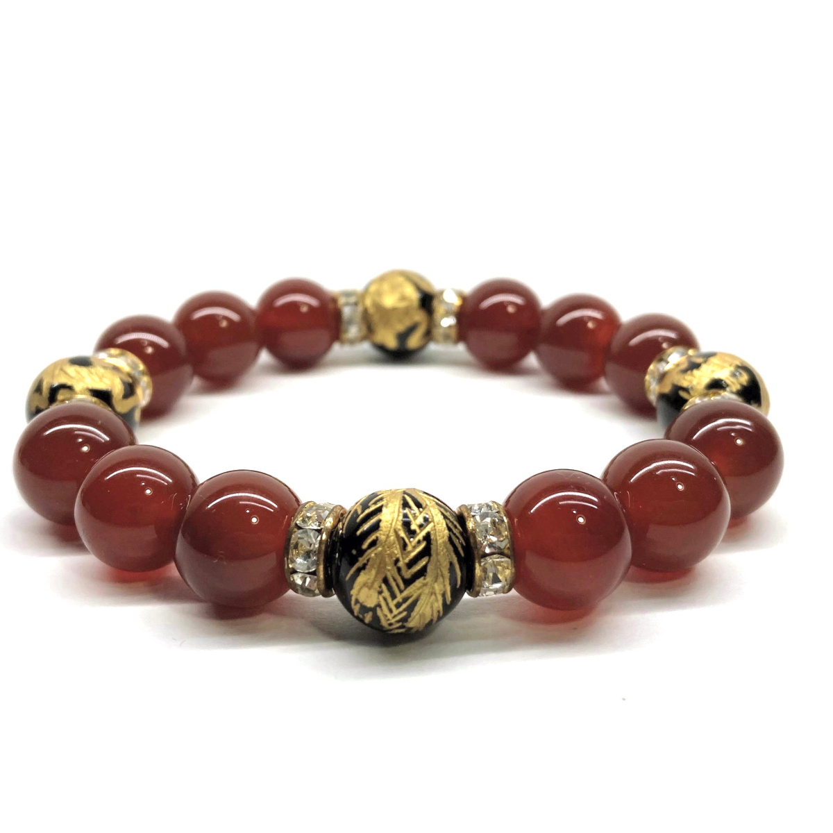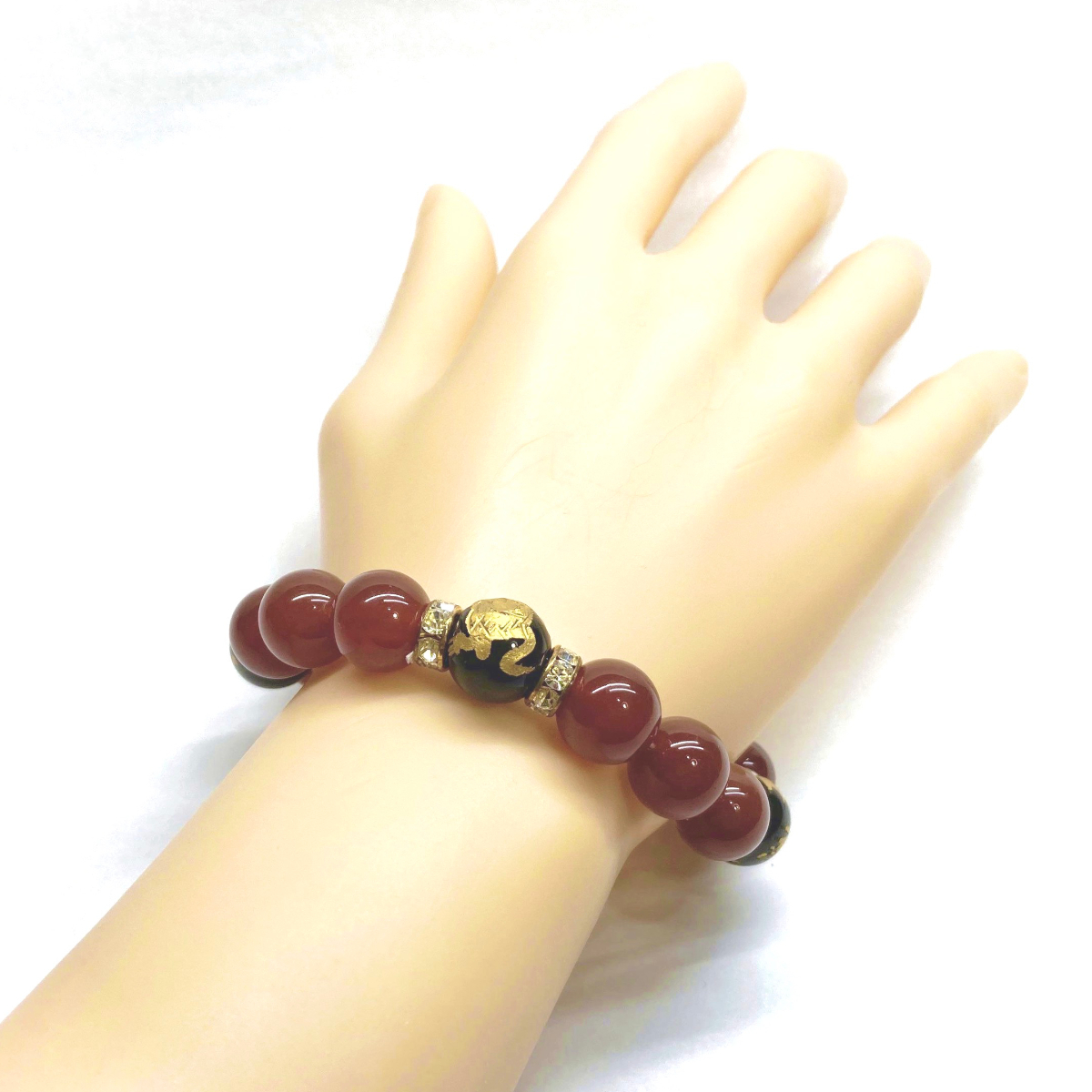 こちらは、四神獣金彫オニキと赤瑪瑙を組み合わせたパワーストーンブレスレットです。四神獣は、中国の伝説で4つの方向(東西南北)を守護する神聖な神。四神獣、厄災から身を守り、多くの運気を呼び込むと言われております。石大きさは程よくインパクトのある12mm玉で内周 約17cmです。 数に限りがございますので気になる方はお早めにどうぞ。