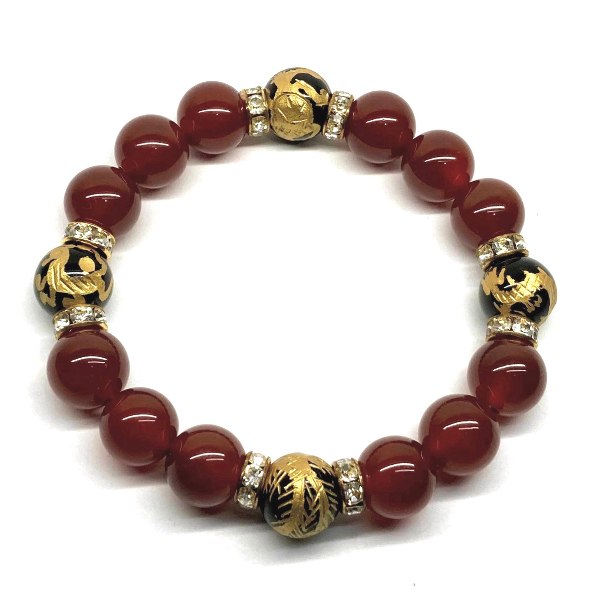 四神獣金彫オニキス×赤瑪瑙 12mm パワーストーン ブレスレット天然石 青龍 白虎 玄武 朱雀 運気上昇 開運 金運 お守り 四神獸 四神相応 G