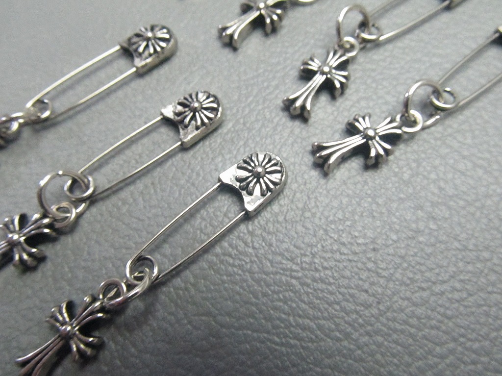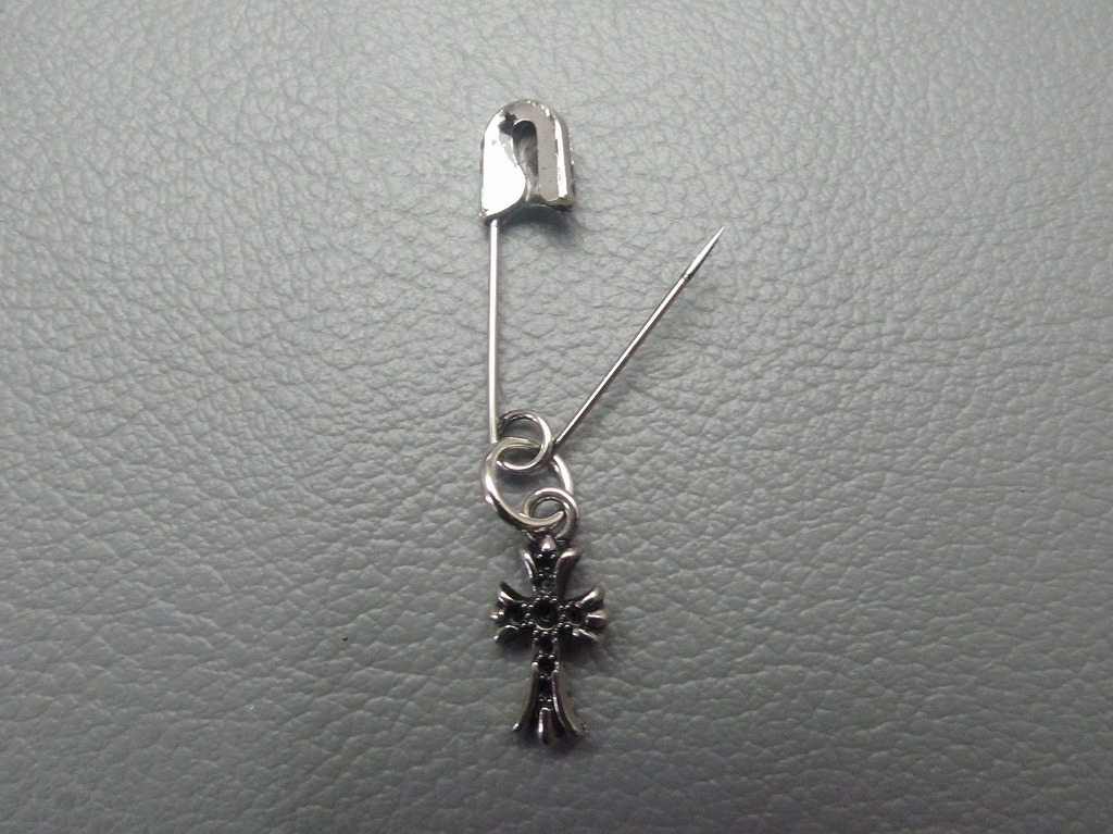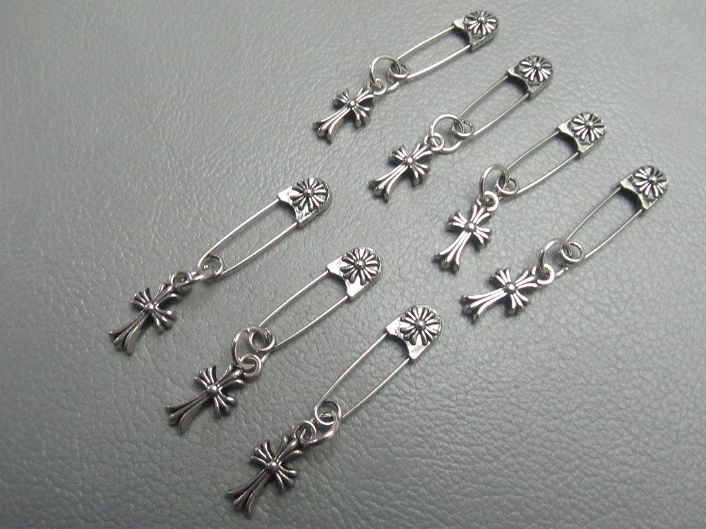 新品 レザークラフト ピンバッジ 安全ピン式 クロム系 /3/ 7個セット クロス 十字架