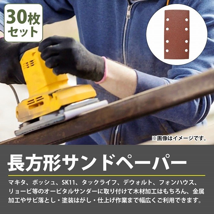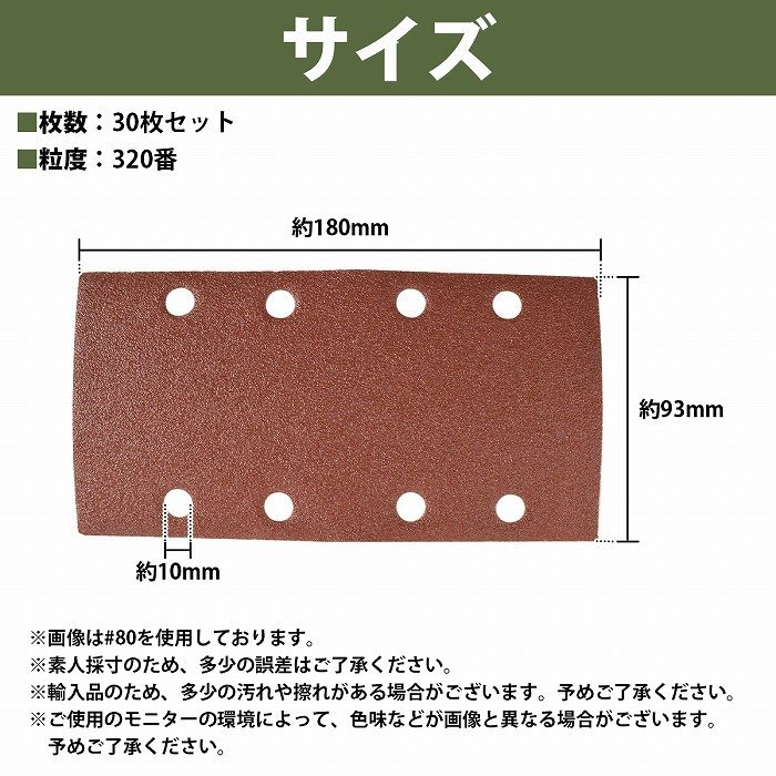 30枚セット #320 320番 オービタルサンダー 93x185 長方形 サンドペーパー 紙やすり マジック式 研磨 パッド ヤスリ 30枚