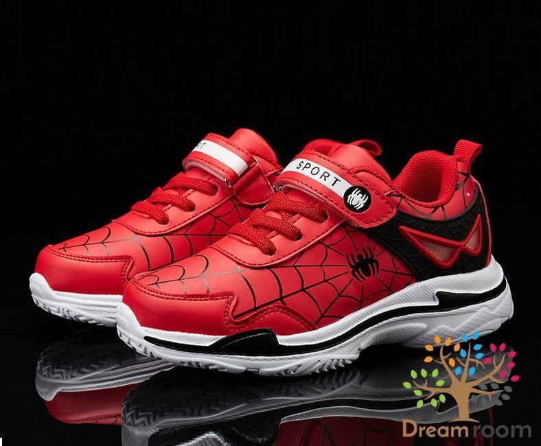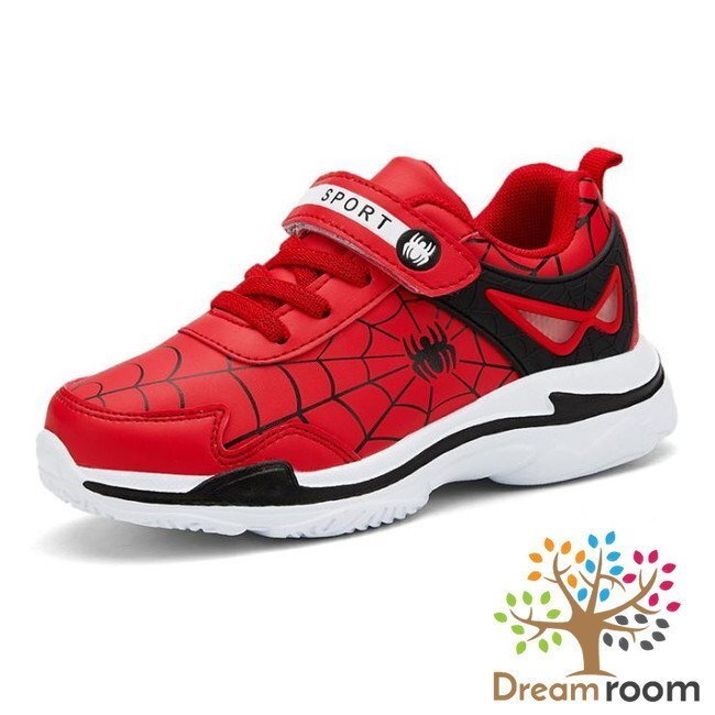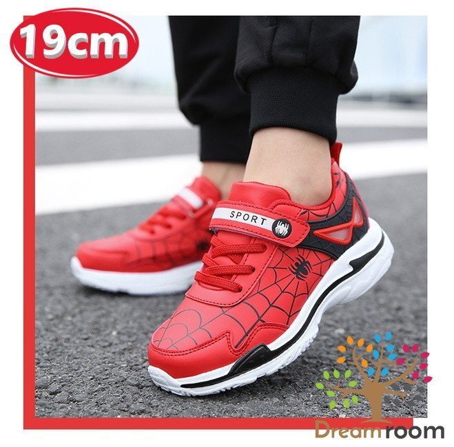 1スタ☆スムース素材 スパイダー デザインスニーカー 【レッド 19cm】 韓国子供服 キッズ シューズ 子供用 男女
