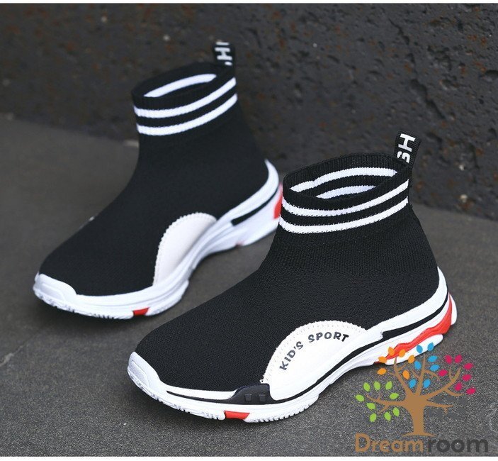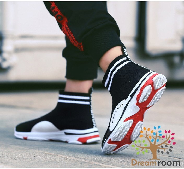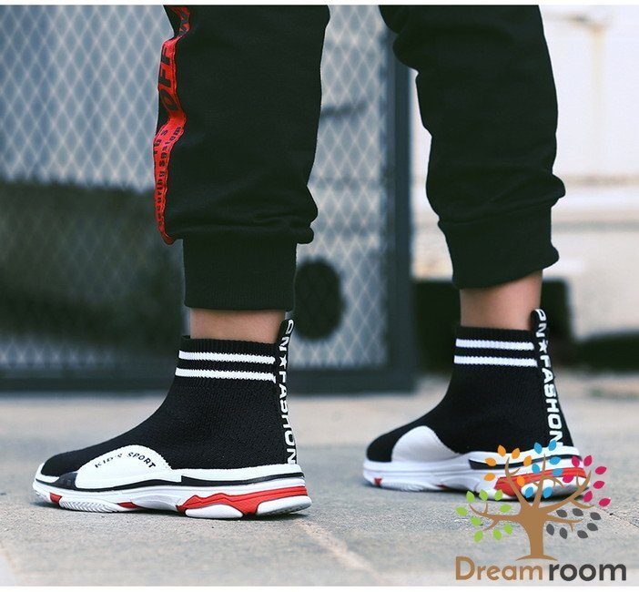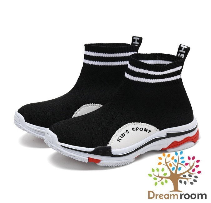 1スタ☆kids 夏用 ハイカット スニーカー 【ブラック×ホワイト 21cm】 韓国子供服 キッズ シューズ ニットスニーカー 子供用 男女