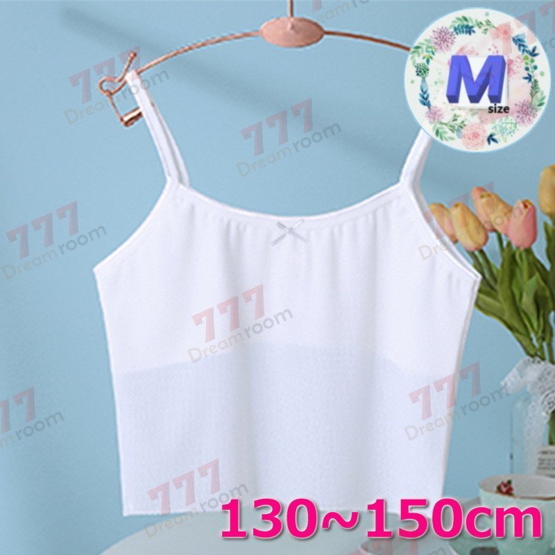 1スタ☆kids 通気性◎ タンクトップ ハーフブラ【M】ホワイト 130-150cm 夏 スポーツブラ 子供 ファーストブラジャーインナー K-405-06