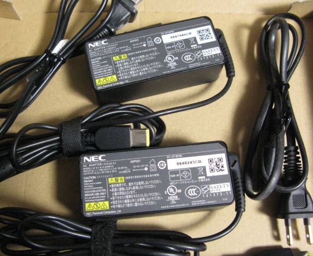 2個セット NEC 純正AC ADP003 (ADP-45TD E/A13-045N1A共通) 20V 2.25A 45W 四角口 平型 PC-VP-BP98 VersaProLaVie Z用/ADP007と互換可能