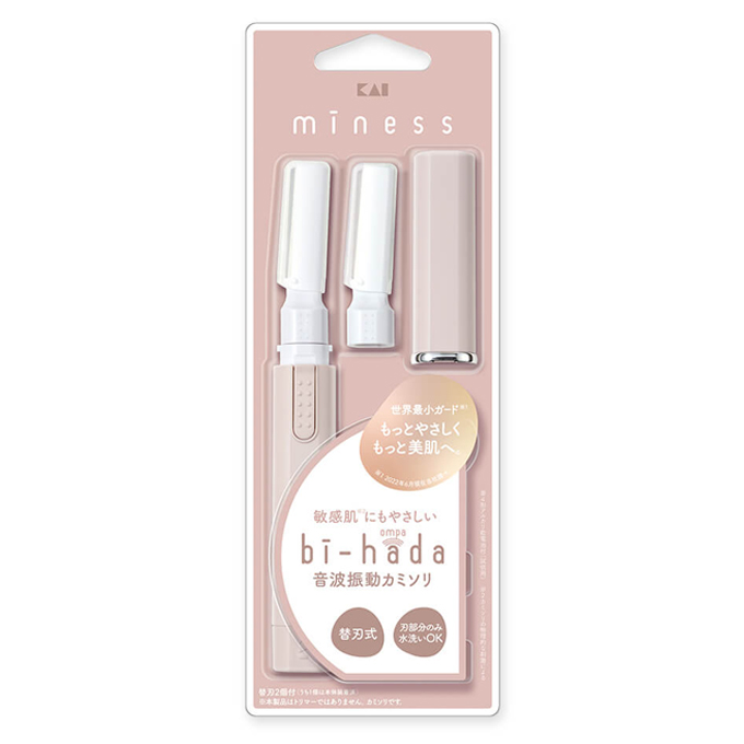 貝印 miness bi-hada ompa 音波振動カミソリ本体 美肌(ビハダ) 電池式 女性用 眉毛 うぶ毛シェーバー うぶ毛トリマー bihada