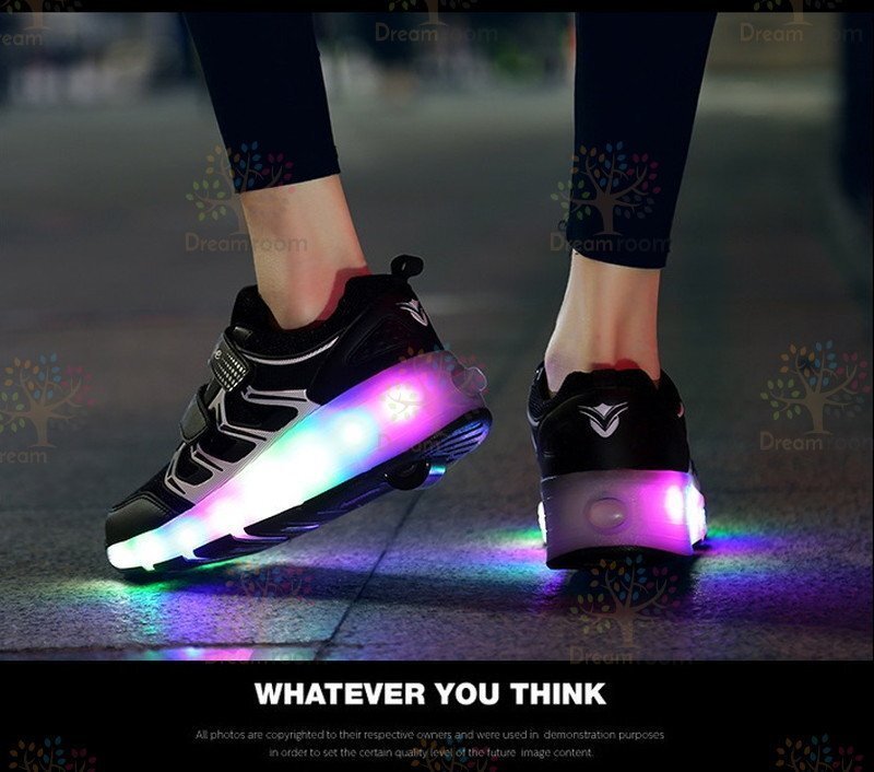 光る☆LED ライトアップスニーカー&ローラーシューズ 一体型 【K-373ブラック 25cm】夜間 スケート靴 反射材 ジョギング 自転車