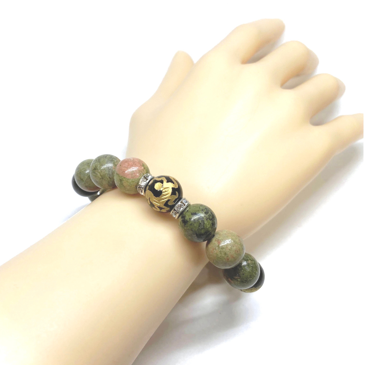 四神獣金彫オニキス×ユナカイト 12mm パワーストーン ブレスレット天然石 青龍 白虎 玄武 朱雀 運気上昇 開運 金運 お守り 四神相応 S