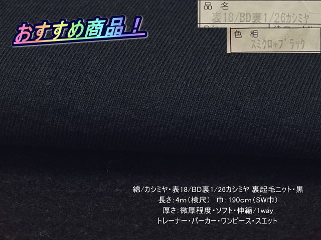 商品は、綿/カシミヤ・表18/BD裏1/26カシミヤ