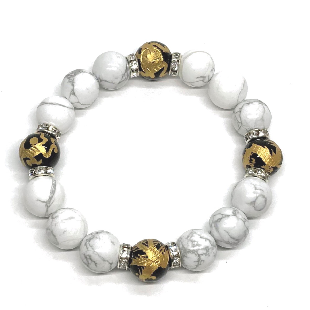 四神獣金彫オニキス×ハウライト 12mm パワーストーン ブレスレット天然石 青龍 白虎 玄武 朱雀 運気上昇 開運 金運 お守り 四神相応 S