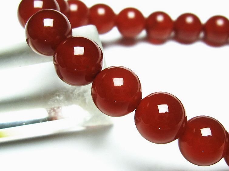 | ■商品名: 赤アゲートブレスレット ■商品ID: T57-6480 ■商品重量:約 17.3g ■商品サイズ:内周約:159mm(±5mm)粒直径約:8mm(±0.5mm) 【アゲート(瑪瑙)】 和名では瑪瑙(めのう)といい、アゲートの模様が馬の脳のように見える事からこのような名前が付けられました。 アゲートは赤、緑、青、黄、黒など、様々な色に着色されることで石本来のパワーがさらにアップするといわれており、着色により魅力を増す天然石はアゲートだけとも言えます。 さらにはアゲートを組み合わせるとペアになっているペアアゲート(トレジャーメノウ)は龍穴を生み出すとされ、風水的にも良いといわれています。 アゲートは古来より日本やインドやチベットなどで魔よけやお守りとされてきました。 失敗や不幸を遠ざけ金運や仕事運、成功運とも結び付けてくれる効果のほか、安産のお守りにも良いとされています。 さらに家庭円満や対人関係をスムーズにするなど、オールマイティな効果を持った石です。 ⇒ アゲートをもっと詳しく ◆ワンポイント情報 アゲートはカルセドニーの変種で、染色がされていなくともそれぞれの種類に多様な色があります。 ざっと仲間を挙げてみてもオニキス(黒)、サードニクス(橙色)、ブルーアゲート(青)、グリーンアゲート(緑)、イエローアゲート(黄)、ブルーレースアゲート(縞青)、モスアゲート(縞緑)、天眼石(縞黒)、カーネリアン(橙色)、ジャスパー(多様な縞)などとても多くの特徴と色合いを持っています。 |