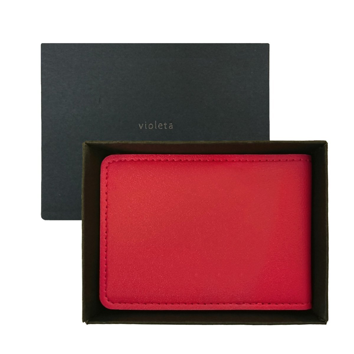 【C10777】violeta 送料無料 パスケース 薄型 レッド レザー調 男女兼用 ファッション小物 ギフト おしゃれ かわいい