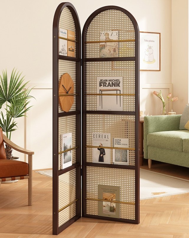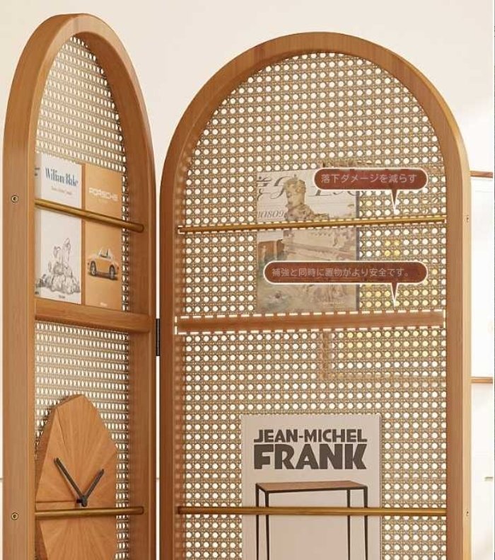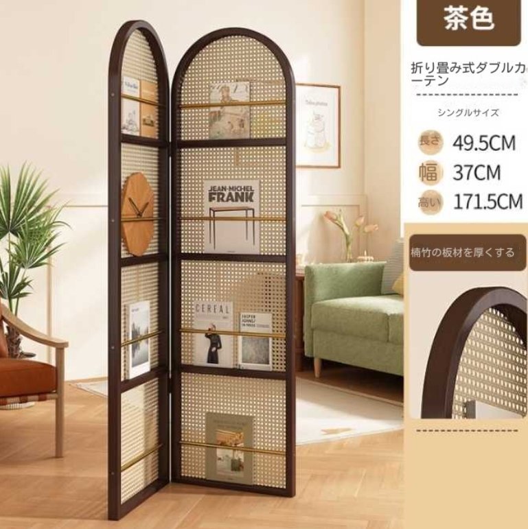 新中式リビング籐編み折りたたみ屏風可動折りたたみ復古仕切りフランス寝室遮蔽置物本棚