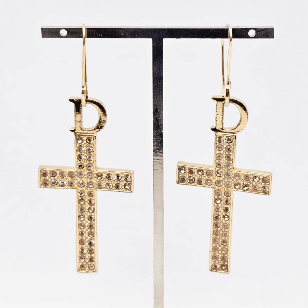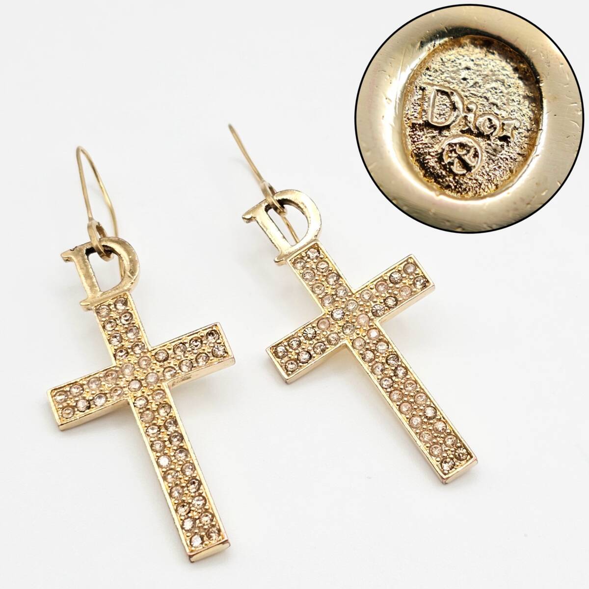 Dior ディオール ピアス クロス ストーン ゴールド 激レア Vintage 1円から~