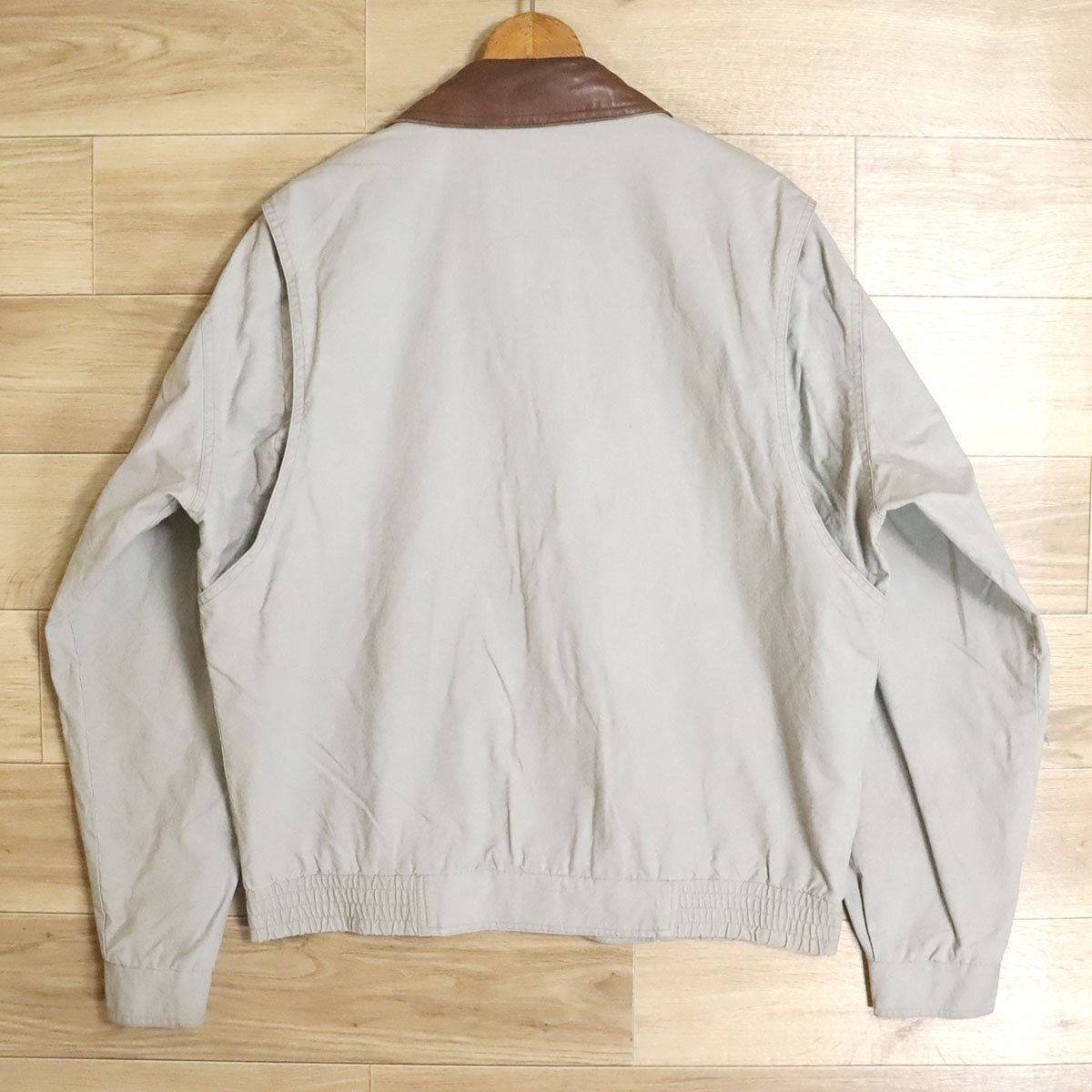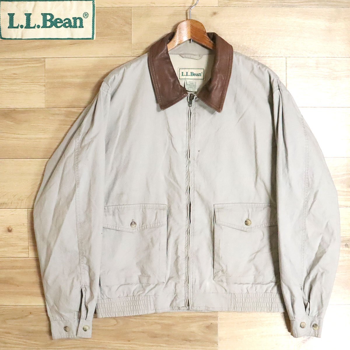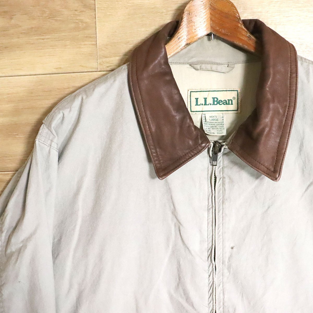J12O/D9.17-1 80s L.L.Bean エルエルビーン 襟レザー コットンジャケット ジップアップ ジャンパー ブルゾン メンズ L
