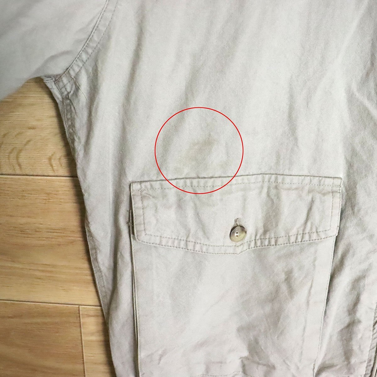中古品です。使用感があります。袖やフロントなど全体の所々に擦れと薄汚れがあります。